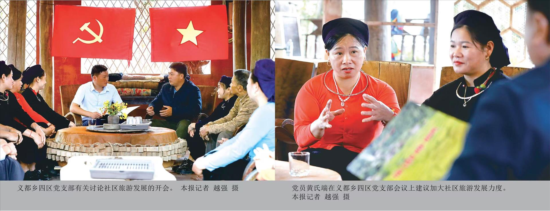 党员黄氏端在义都乡四区党支部会议上建议加大社区旅游发展力度。 本报记者 越强 摄