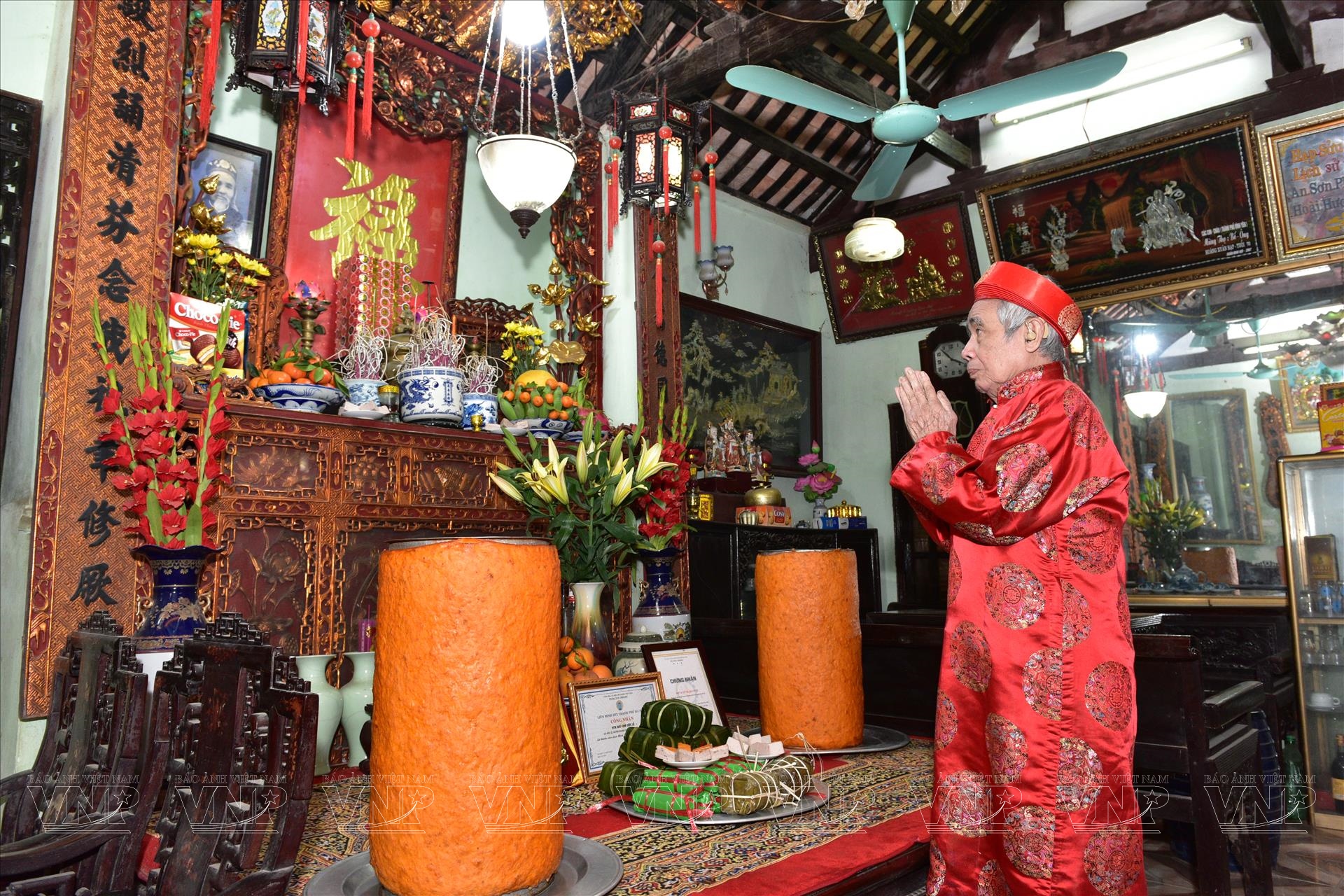 民众将约礼扎肉虔诚地供奉给祖先。本报记者 陈清江 摄