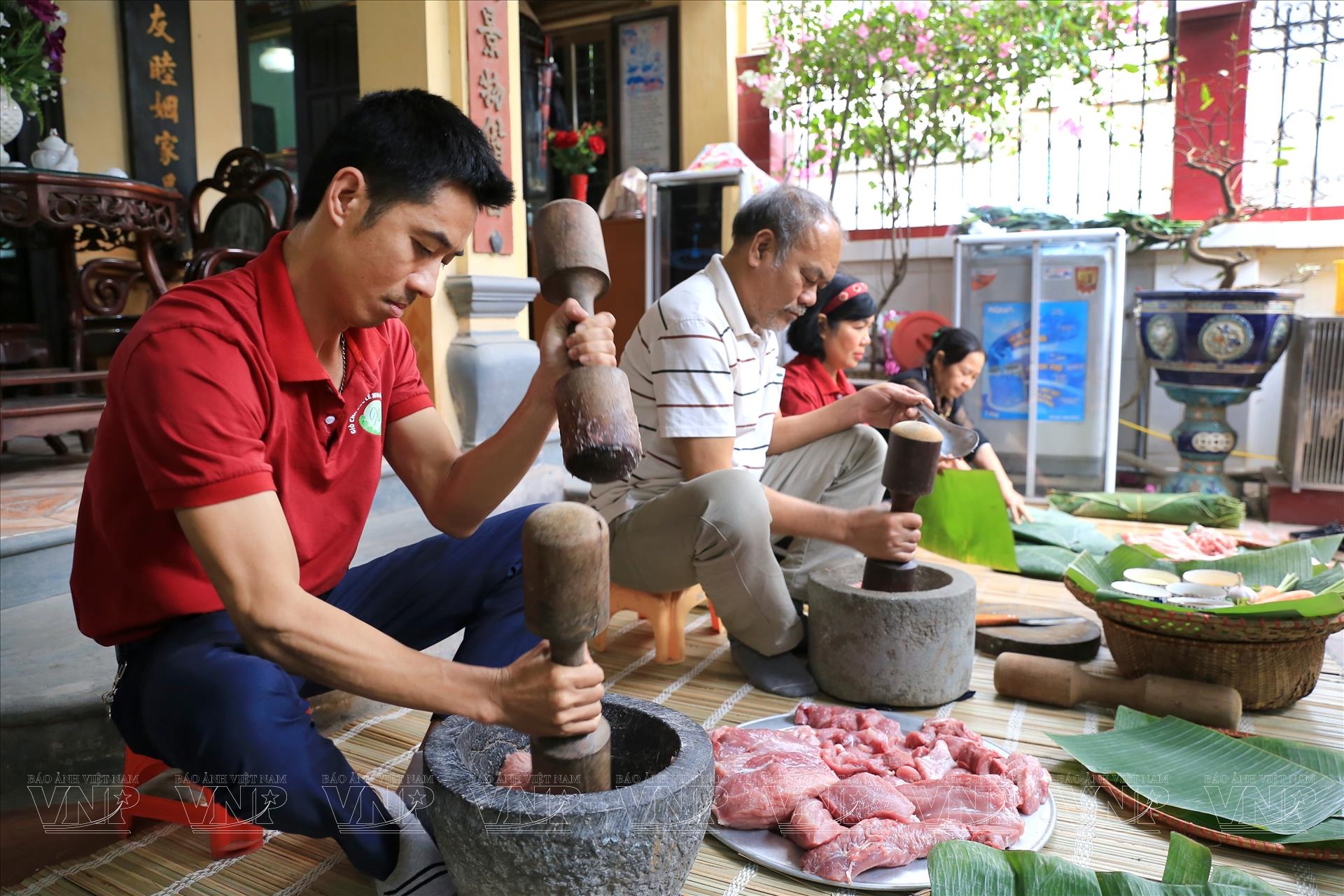 约礼村村民有节奏的捣肉杵声造就了远近闻名的扎肉。本报记者 陈清江 摄