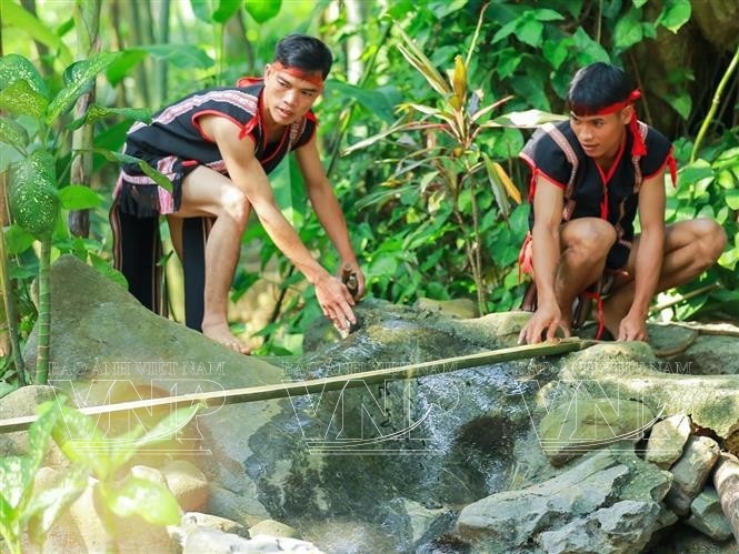 嘉莱省巴拿族同胞的“祈水仪式”举办的主要目的在于祈求水神(Yang Ia)赐予充沛水源,用于生活、耕作与生产。该仪式是巴拿族独具特色的文化象征,体现了社区凝聚力以及对未来丰收年的期盼。近日,祈水仪式在越南各民族文化旅游村再现。
