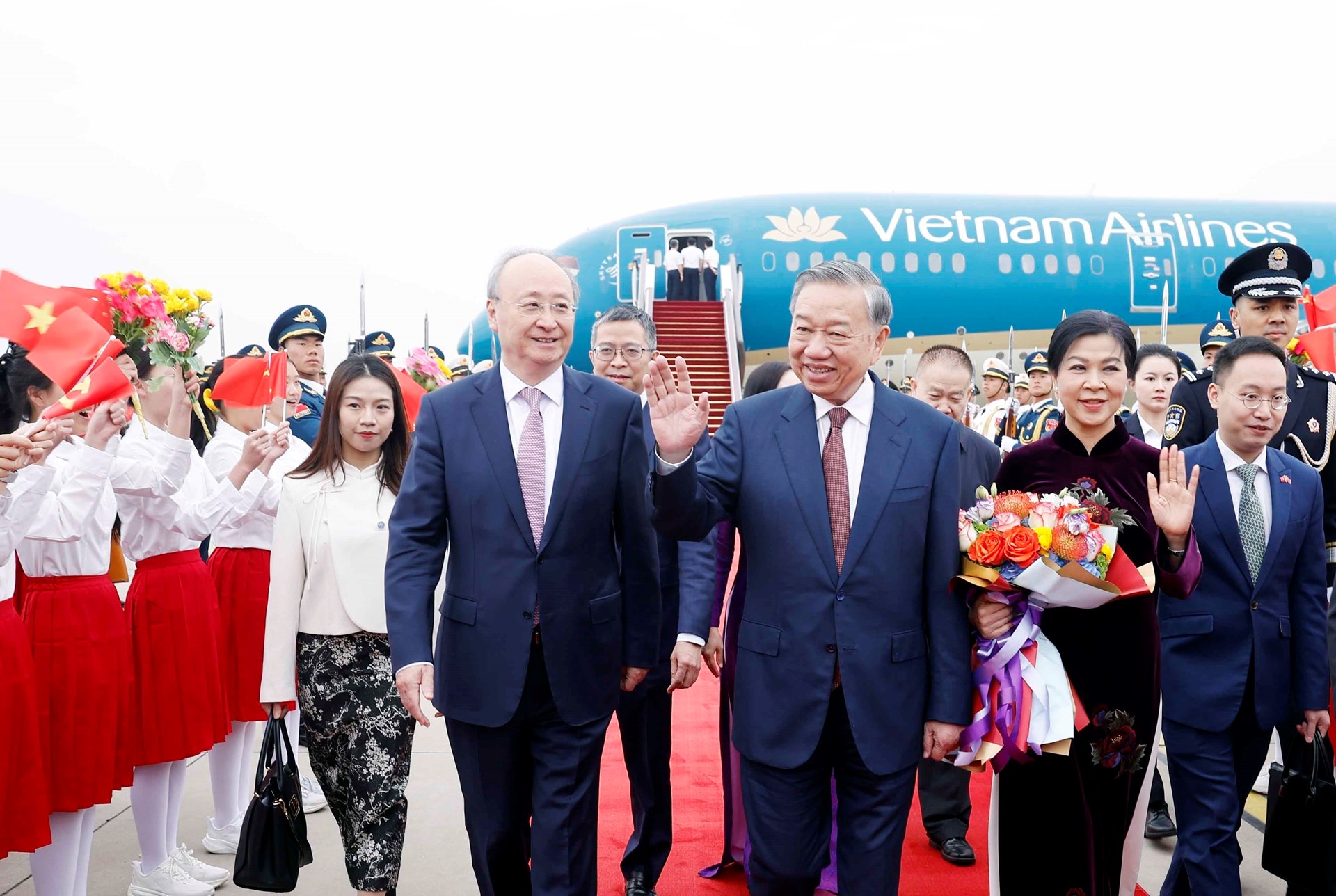 越通社特派记者报道,应中共中央总书记、中国国家主席习近平及夫人的邀请,4月14日上午,越共中央总书记、国家主席苏林及夫人与越南高级代表团抵达首都北京,开始于4月14日至17日对中国进行的国事访问。