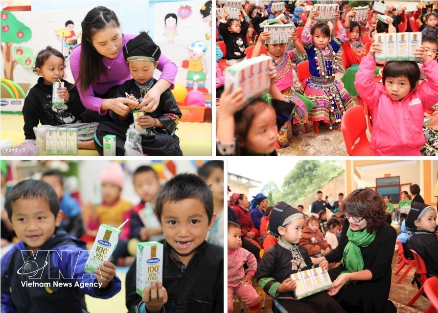 越南乳制品股份公司向困难地区学生捐赠牛奶。图/越通社