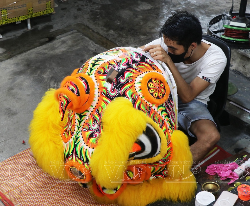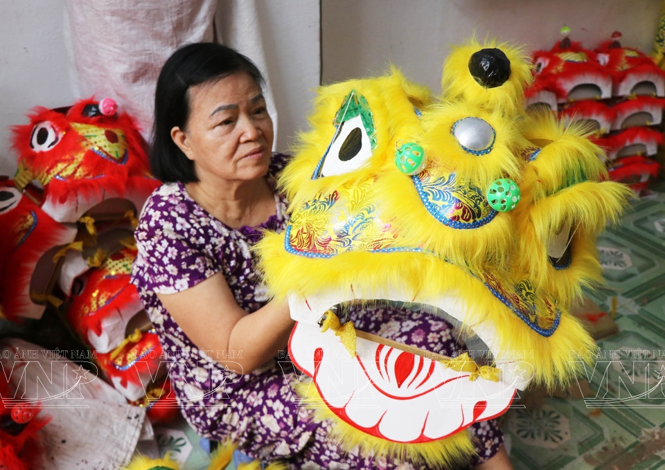 临近2025年中秋佳节,顺化市众多家庭和作坊加大舞狮狮子头及配套产品的生产,以满足日益增长的市场需求。舞狮狮子头制作技艺是顺化古都久负盛名的传统手工技艺,产品不仅款式多样,工艺精细,而且创意独特,兼具实用性与观赏性。