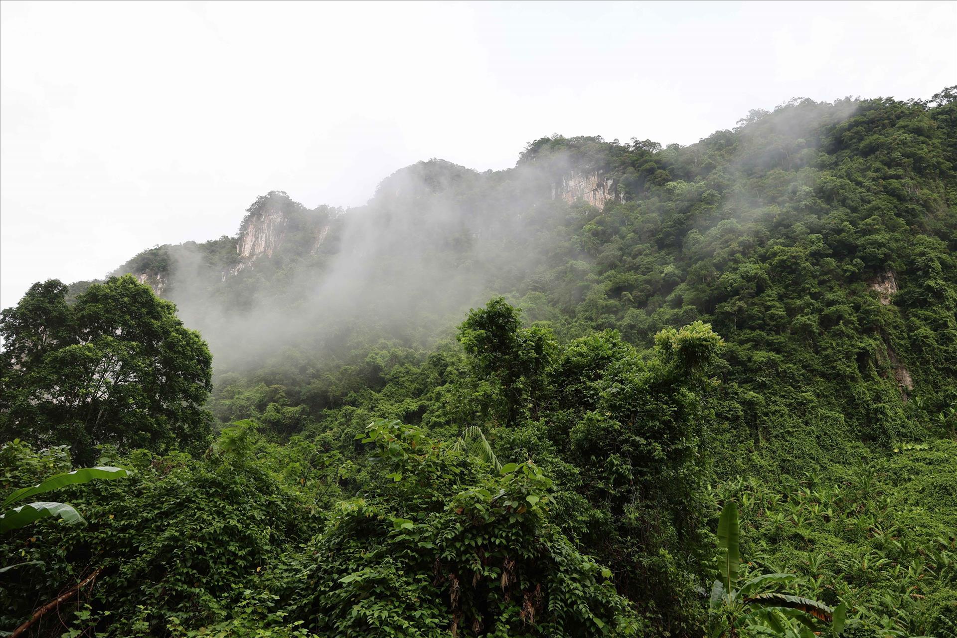 风芽-格邦国家公园中喀斯特石灰岩山体,原始森林中分布着巨大的洞穴入口,反映出持续数百万年的地质构造过程。图片来源:越通社