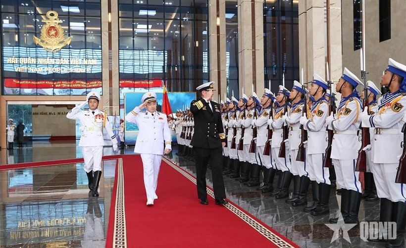 1月30日上午,越共中央委员、中央军委常务委员、越南人民军总参谋长、国防部副部长阮新疆大将会见了澳大利亚舰队司令马克·哈蒙德(Mark Hammond)少将。