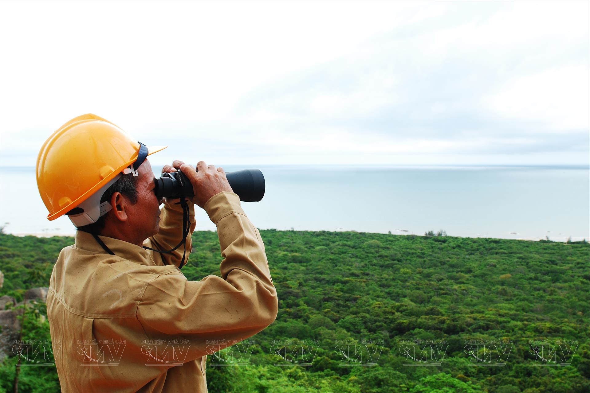 平洲-福宝自然保护区林检干部从高处观察。本报记者 阮伦 摄
