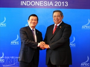 2013年10月7日下午,第21届亚太经合组织峰会(APEC21)开幕式在印尼巴厘岛隆重举行。由张晋创主席率领的越南代表团出席会议。