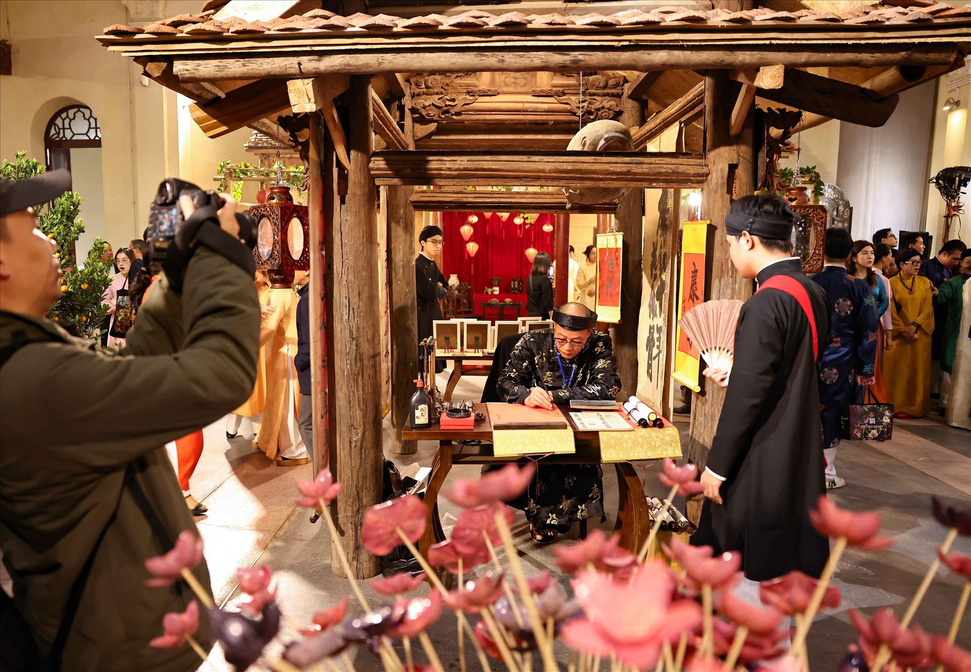 For the first time, the relic site at 22 Hang Buom street has been transformed into a living tableau of the Red River Delta’s authentic Tet atmosphere, complete with the lively bustle of a traditional spring market.