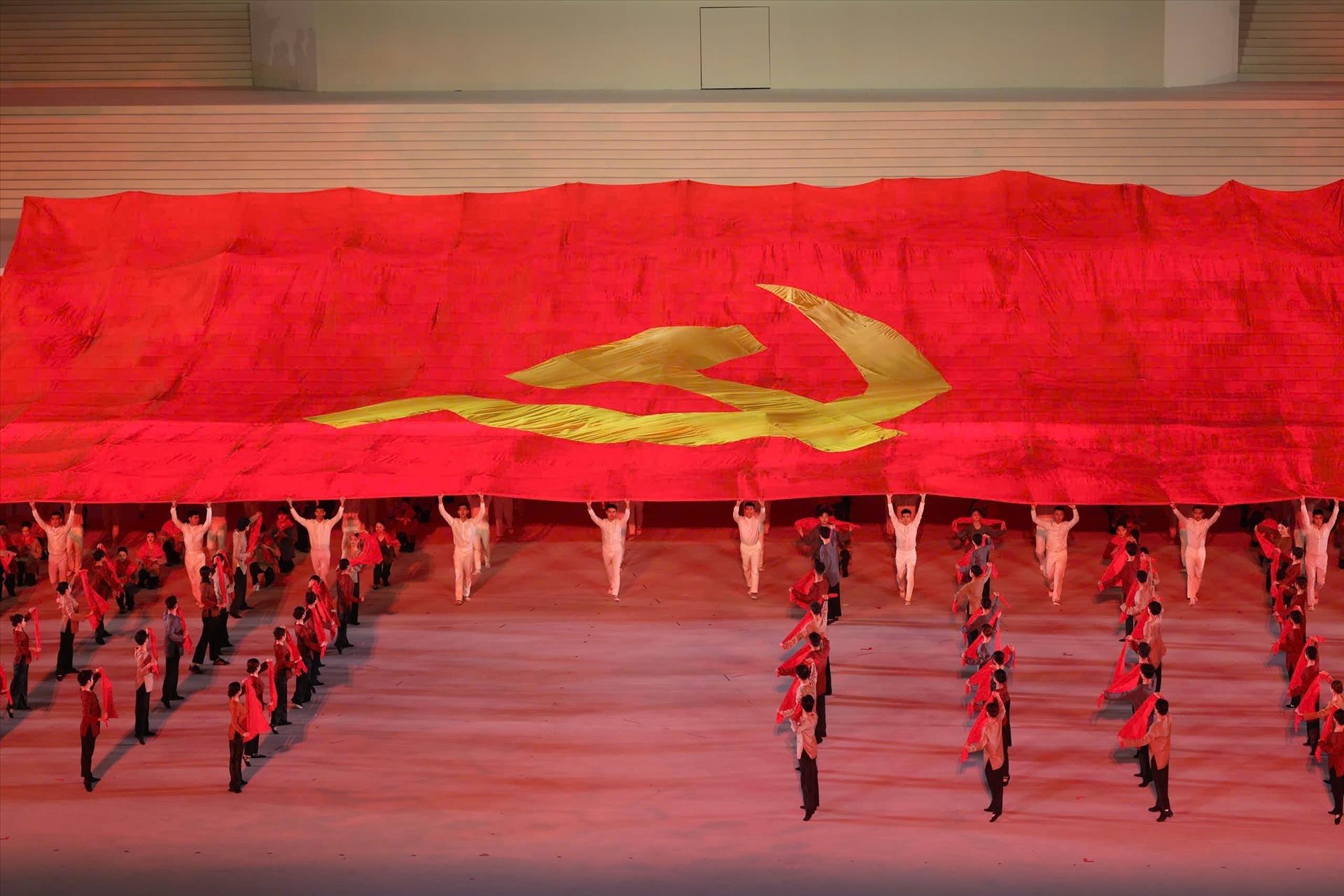 The program ‘Under the Glorious Flag of the Party’ served as a special highlight rich in political, cultural, and artistic significance, reflecting the steadfast trust of the entire Party, people, and armed forces in the leadership of the Communist Party of Vietnam and their shared determination to unite in successfully implementing the Resolution of the 14th National Party Congress. Photo: VNA