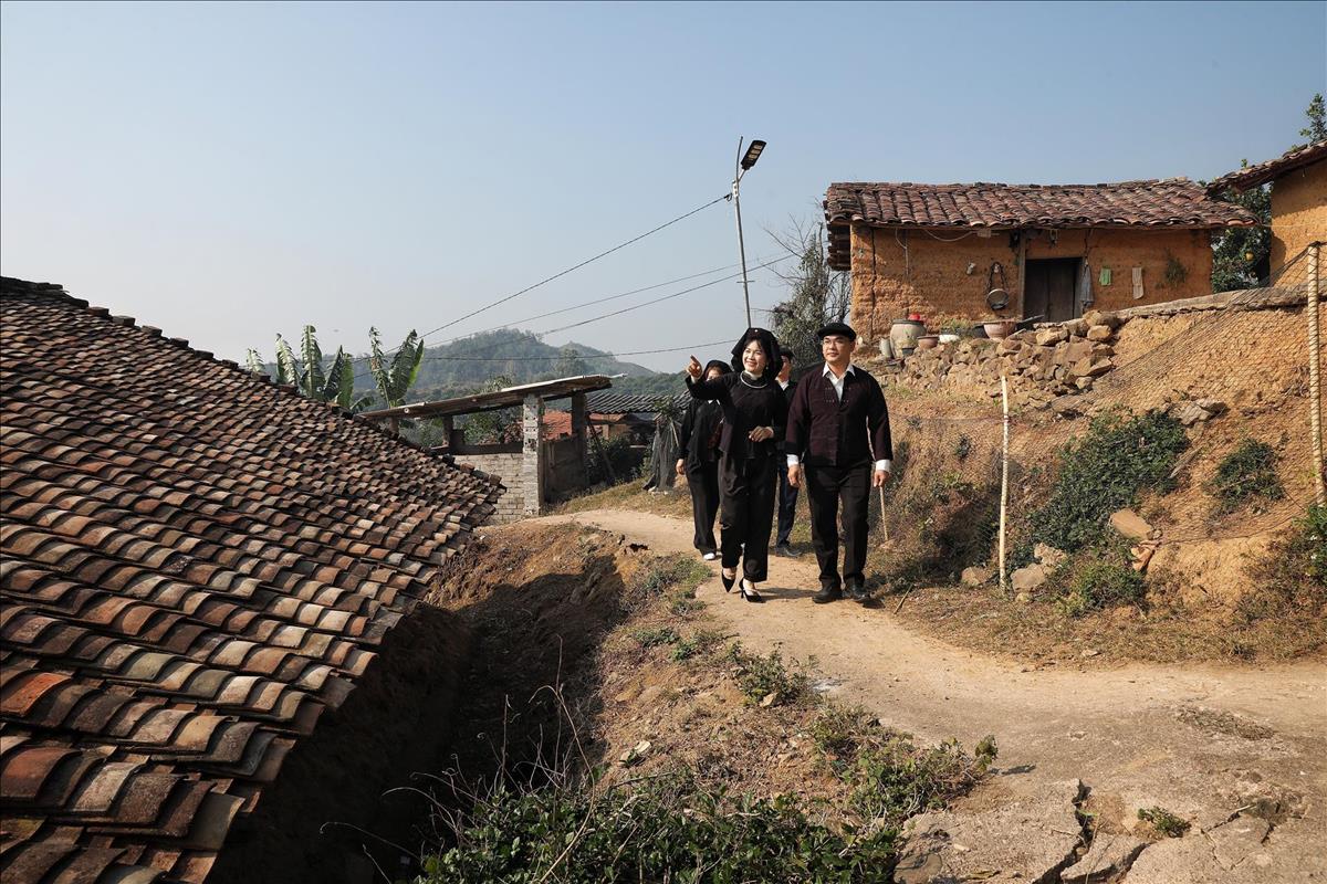 Rammed earth houses topped by yin-yang tiled roofs are preserved in relatively good condition. Photo: VNA