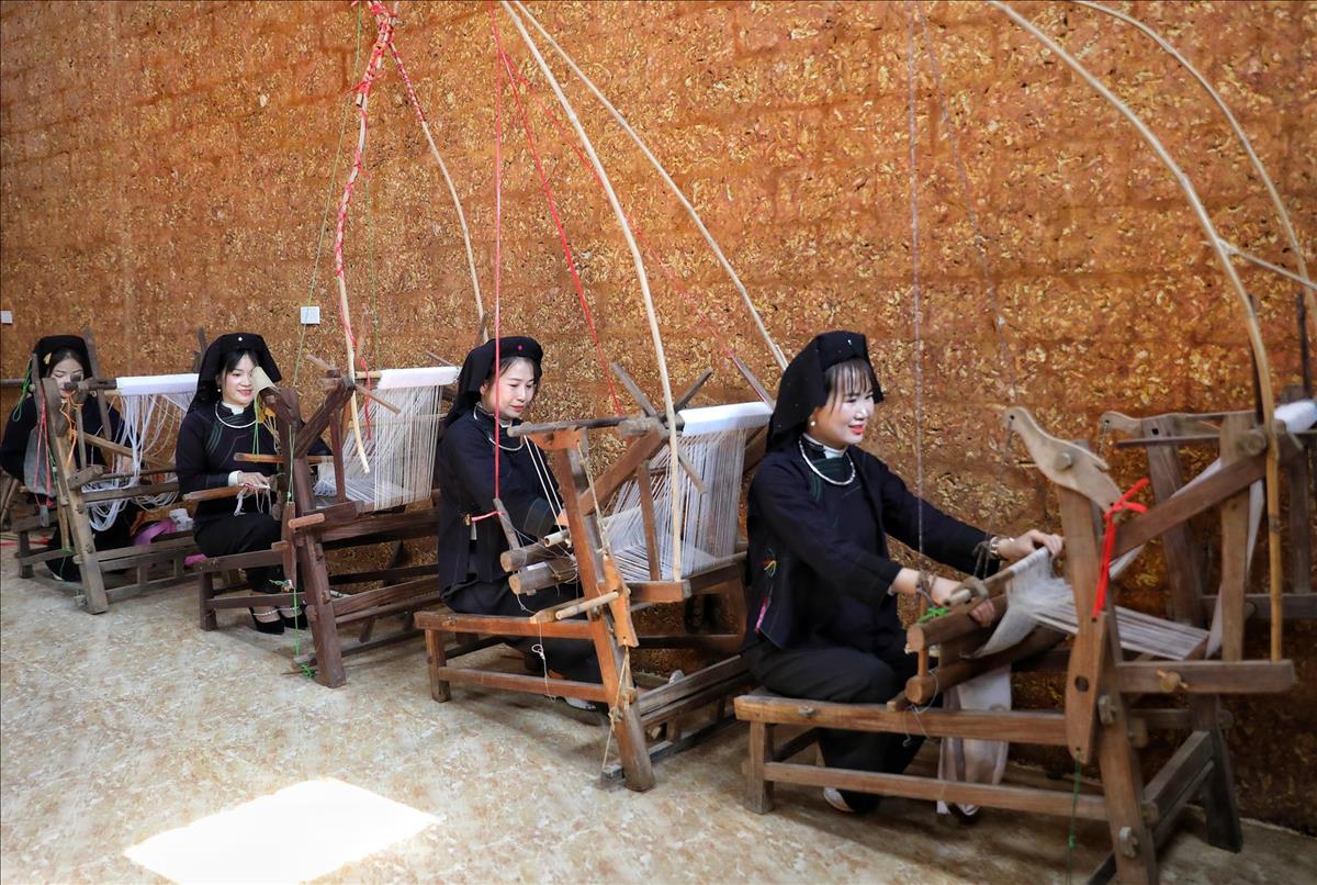 Brocade weaving craft is one of typical cultural features of Nung people in Bac Hoa village. Photo: VNA