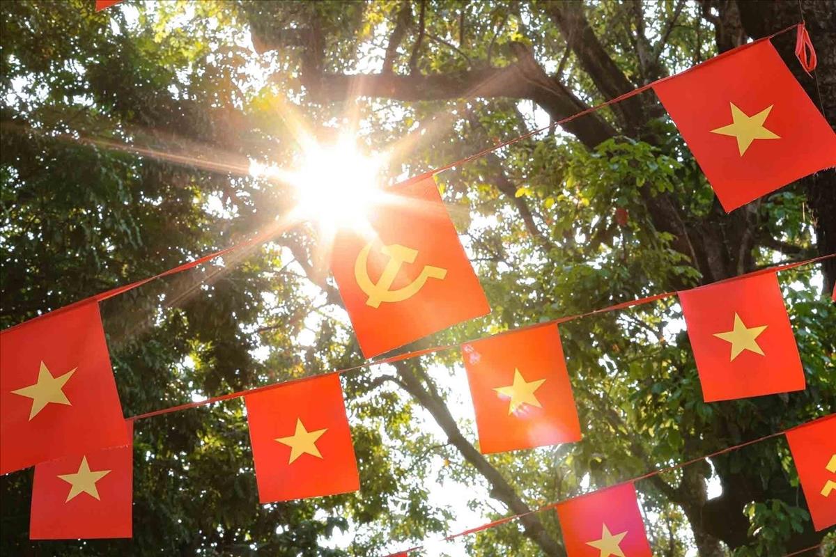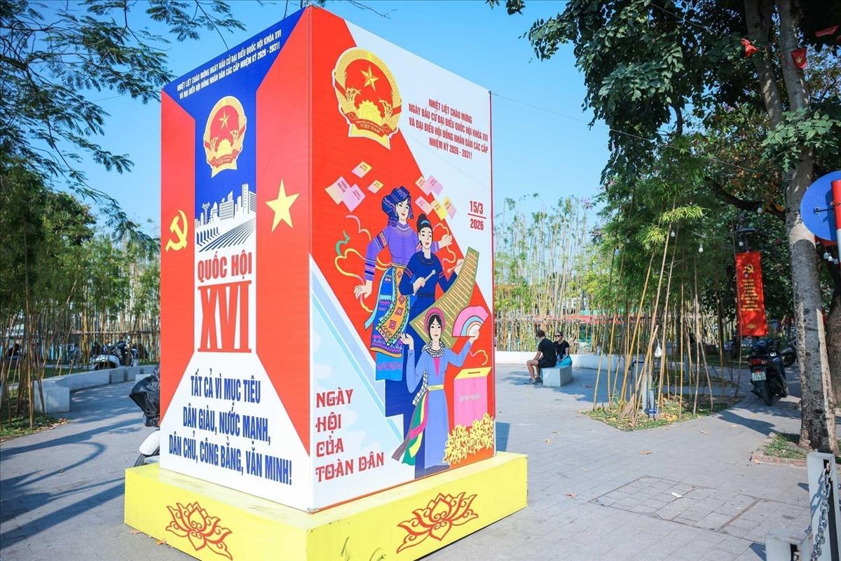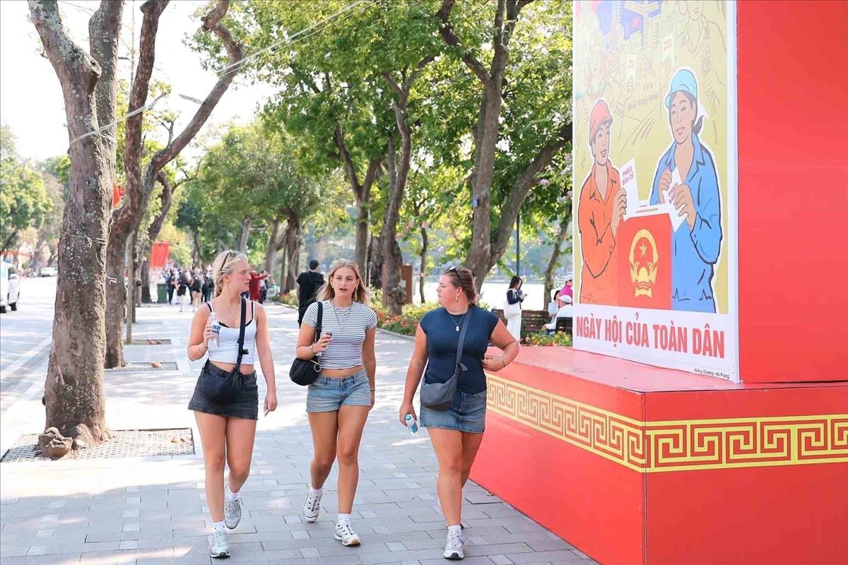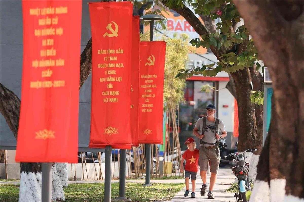 Colorful flags and banners blend with the vibrant atmosphere of locals and tourists, creating a fresh and lively picture for election day. Photo: VNA
