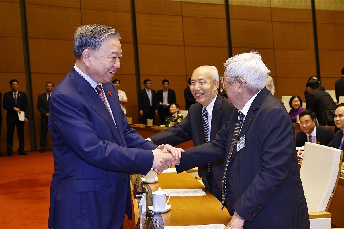 Party General Secretary To Lam meets delegates at the 16th National Assembly's first session. Photo: VNA