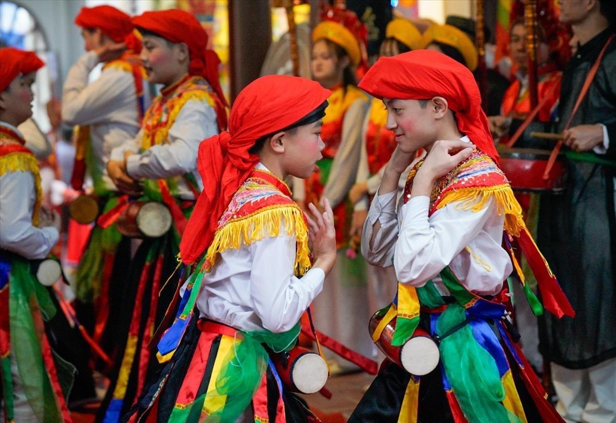 Recognised as a national intangible cultural heritage in 2020, its most distinctive highlight is the "Con Di Danh Bong" dance - an ancient performance where young men dress as women./.