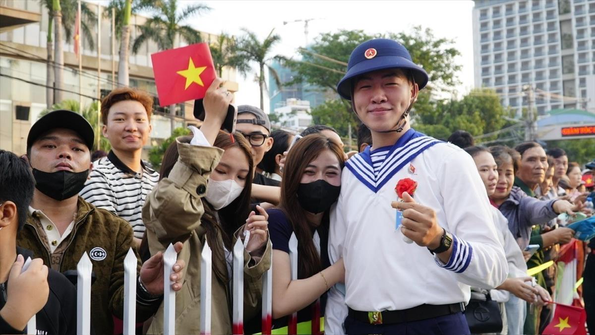 Young people in Da Nang enthusiastically depart for military service at the 2026 military enlistment ceremony..