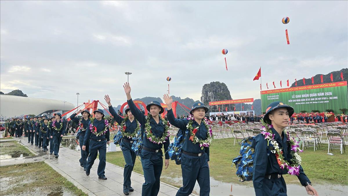 Young recruits attend the 2026 Military Enlistment Day ceremony in Quang Ninh. Photo: VNA