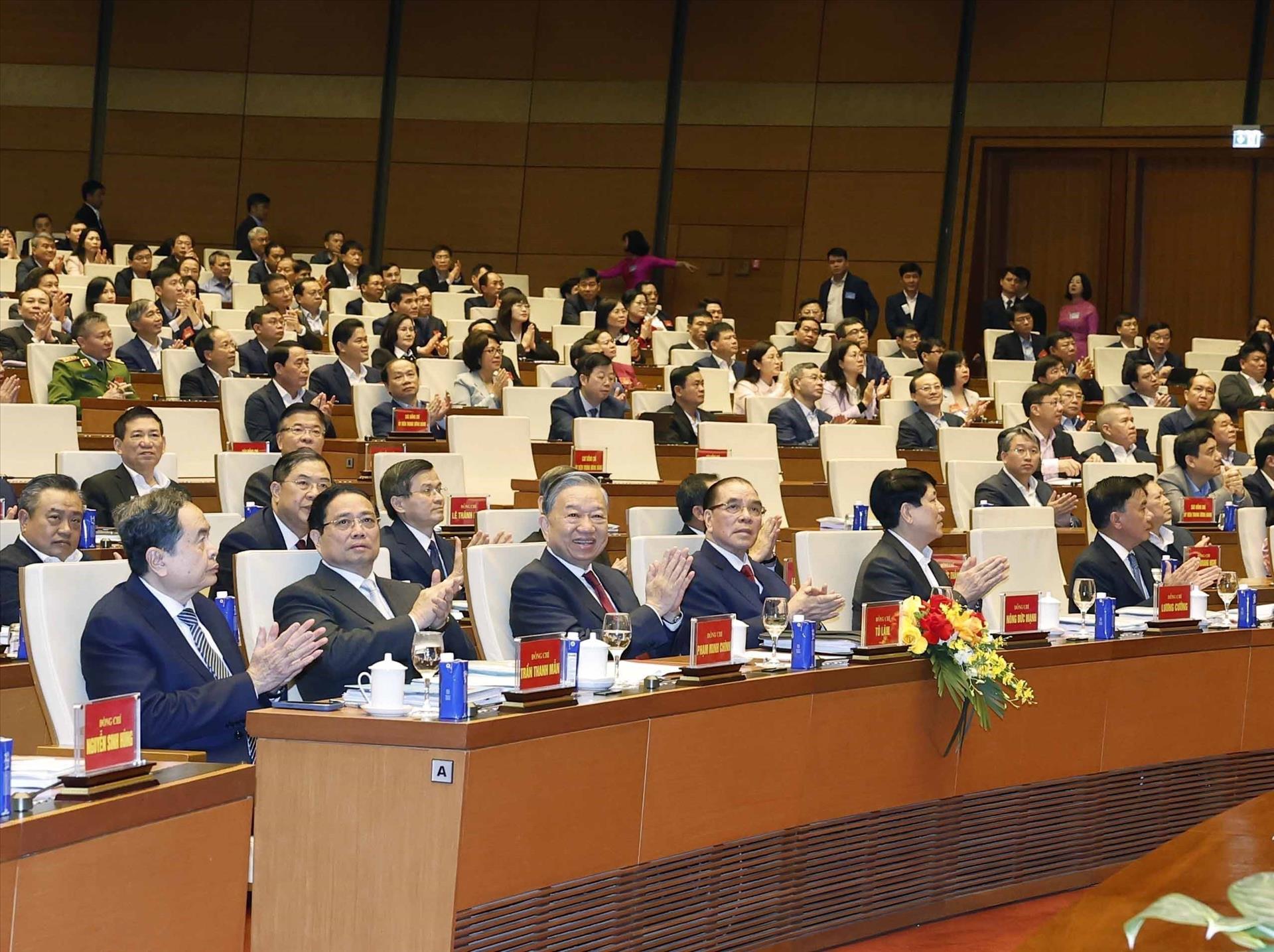 Party General Secretary To Lam and incumbent and former leaders of the Party and State attend the conference on February 7. Photo: VNA