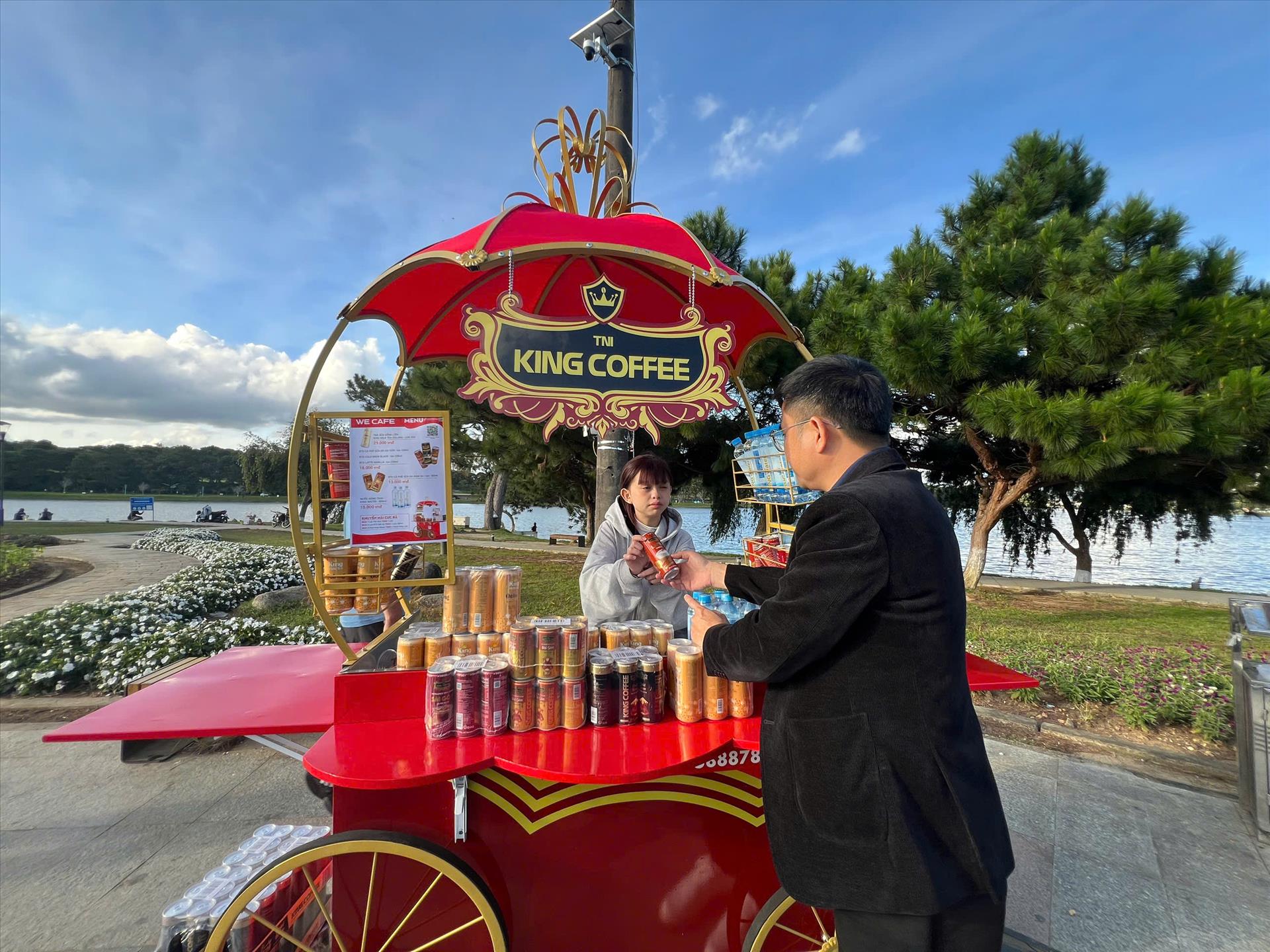 A King Coffee promotional vehicle at Xuan Huong Lake during the festival.