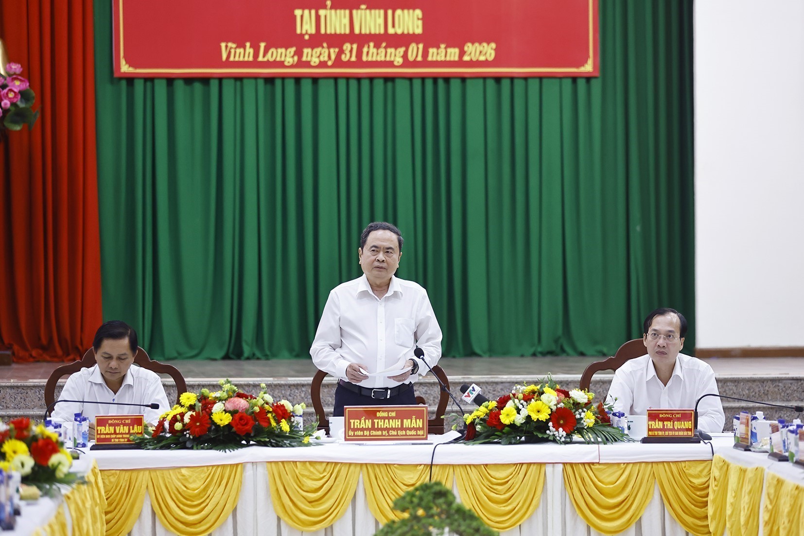 National Assembly Chairman Tran Thanh Man speaks at the working session with the Vinh Long provincial Election Committee on January 31. Photo: VNA