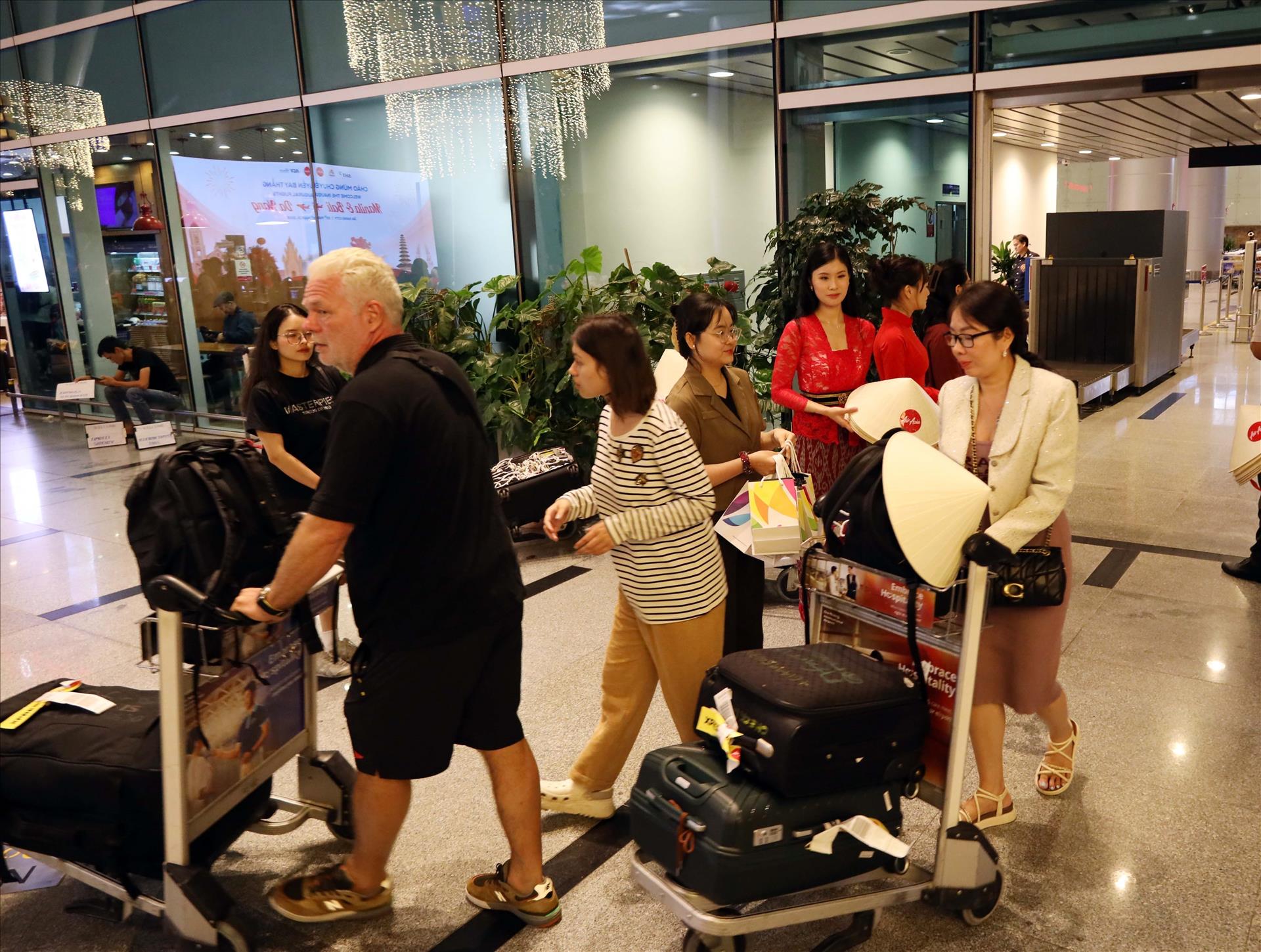 The passengers are welcomed at the Da Nang International Airport. Photo: VNA