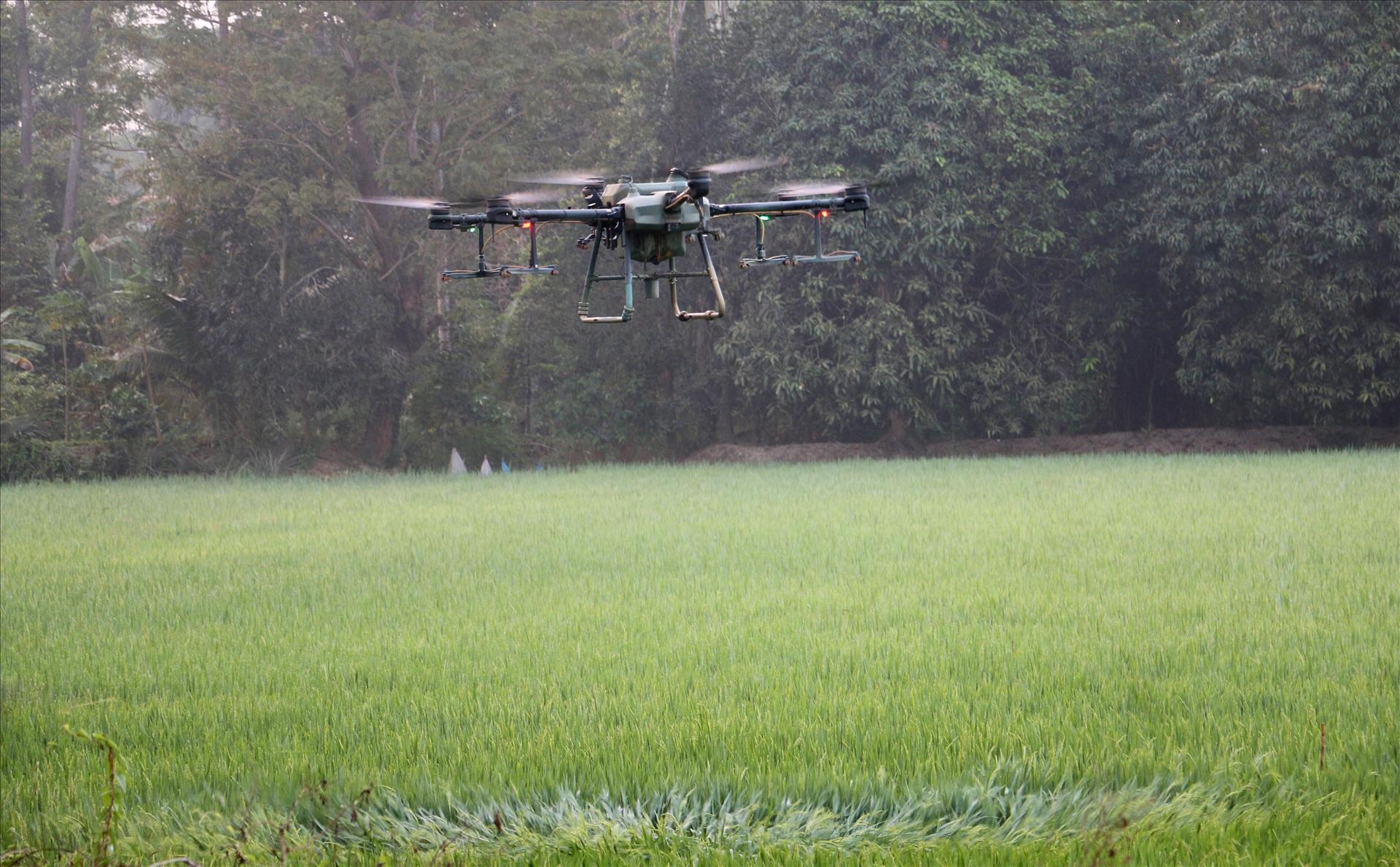 Farmers in An Giang utilize drones for pesticide spraying to save costs, labor, and time. Photo: VNA