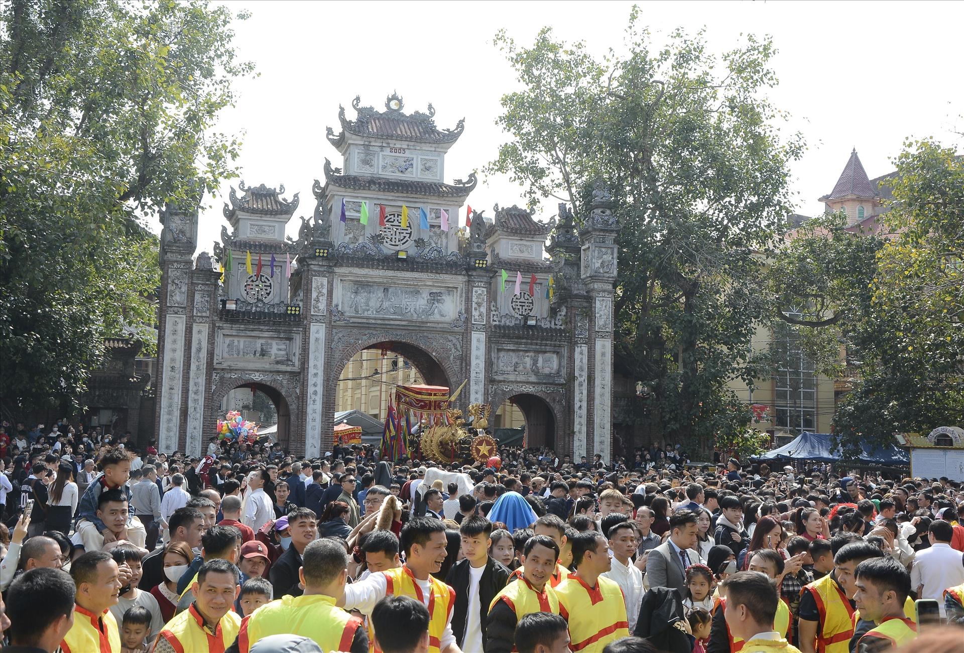Dong Ky giant firecracker procession festival attracts a vast crowd of participants . Photo: VNA
