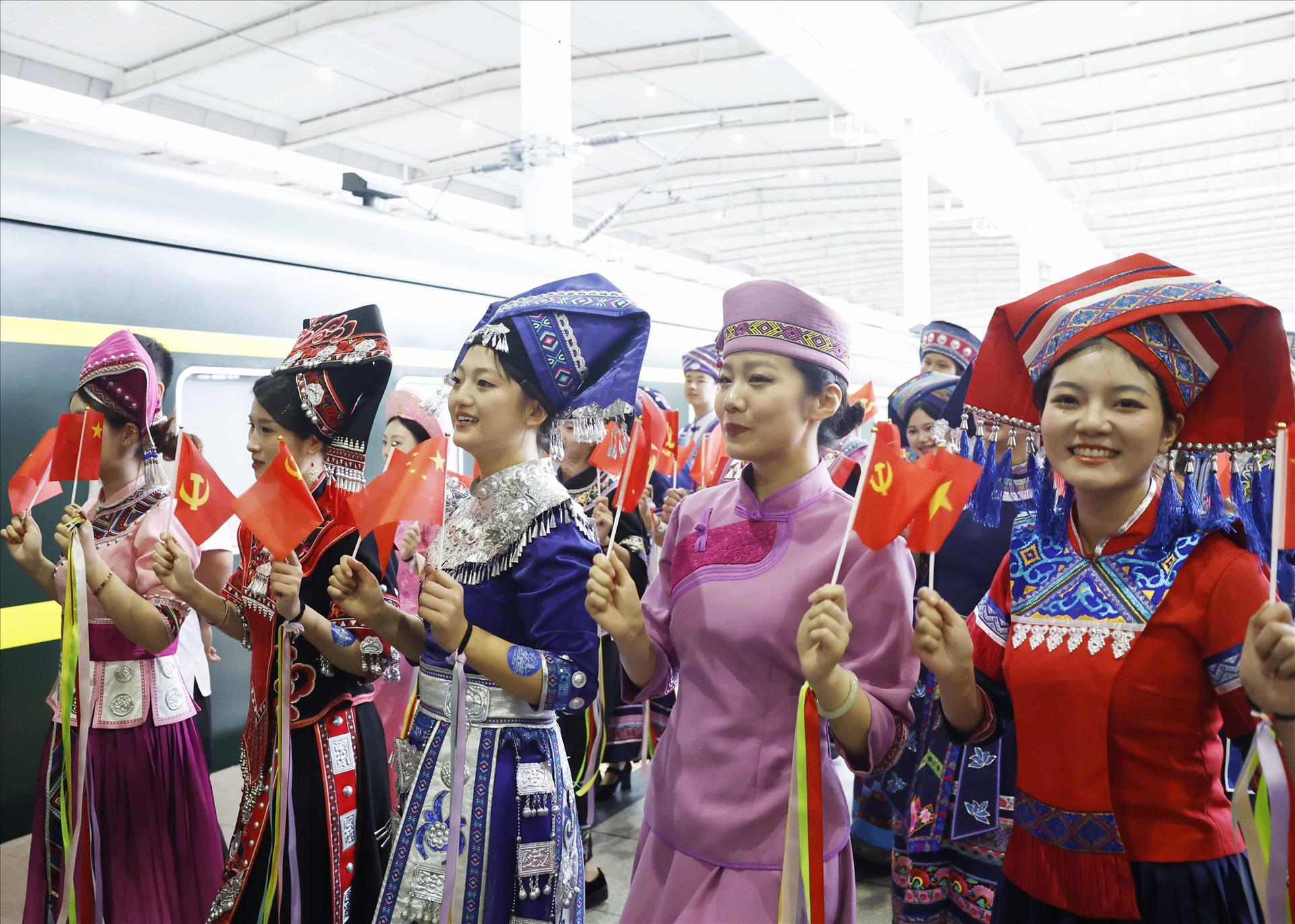 Farewell ceremony for General Secretary and State President To Lam and his spouse at Nanning East Railway Station in Nanning City. Photo: VNA