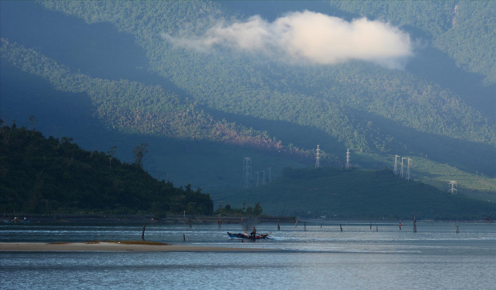 Nestled in Chan May–Lang Co commune of Hue, Lap An Lagoon lies quietly at the foot of the famed Hai Van Pass, offering visitors a landscape where mountains, water, and sky blend into tranquil harmony. Covering roughly 800 hectares of brackish water, the lagoon is embraced by the imposing Bach Ma Mountains, whose lush green slopes form a dramatic backdrop that enhances the lagoon’s calm and poetic beauty.