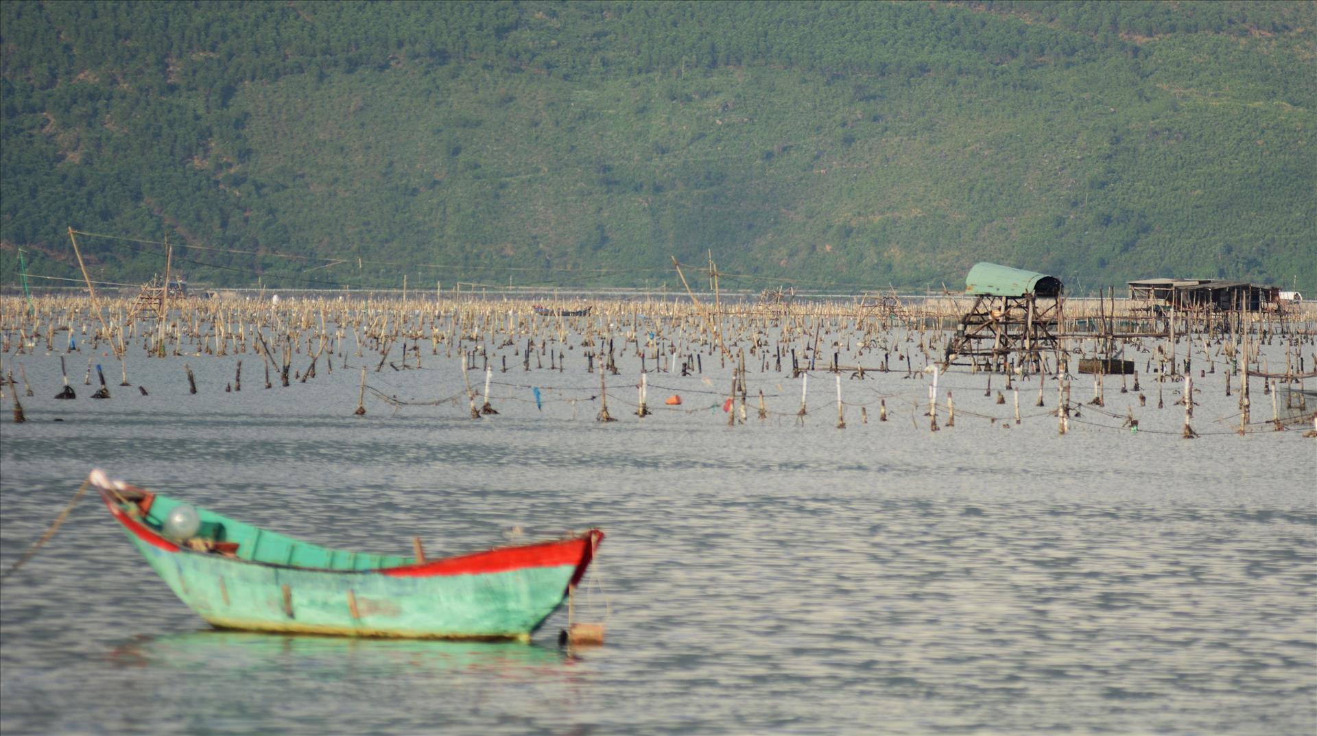 Oyster farming sites of Hue residents dot the wide waters of Lap An Lagoon. Photo: VNA
