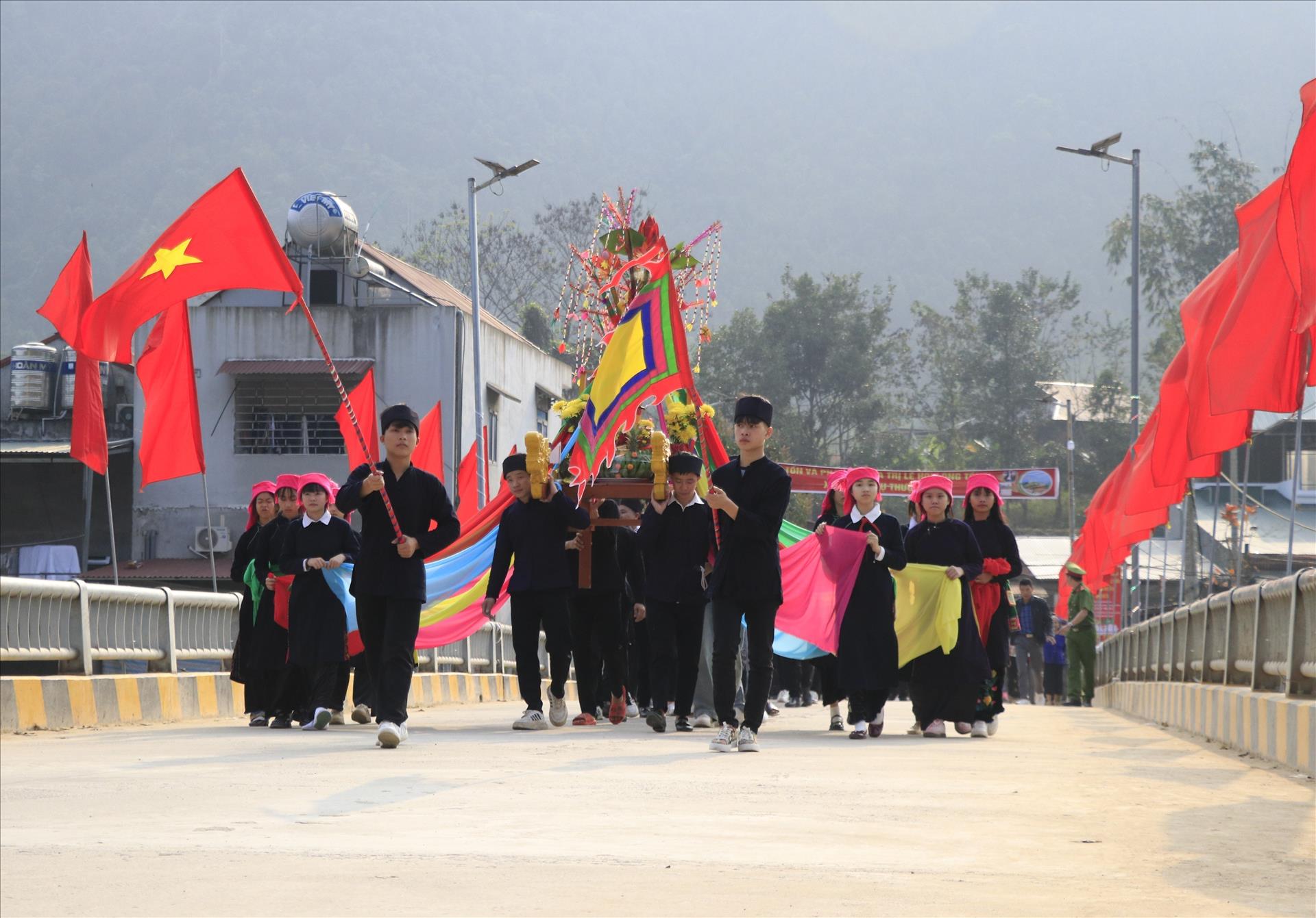 Offering procession during the festival at Phong Du Thuong commune. Photo: VNA