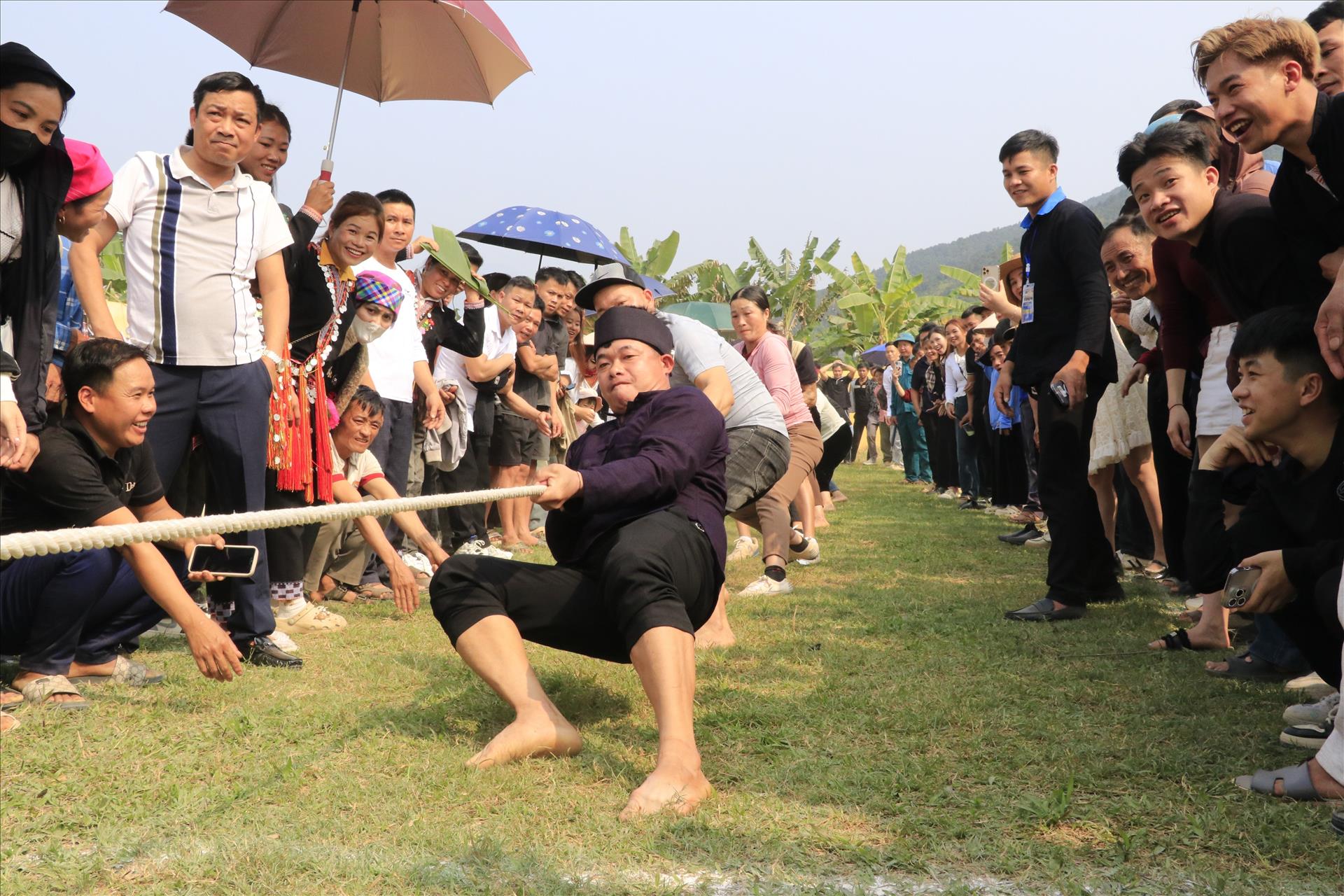 The tug of war game during Long Tong festival at Phong Du Thuong commune attracts people of other ethnic groups and tourists. Photo: VNA