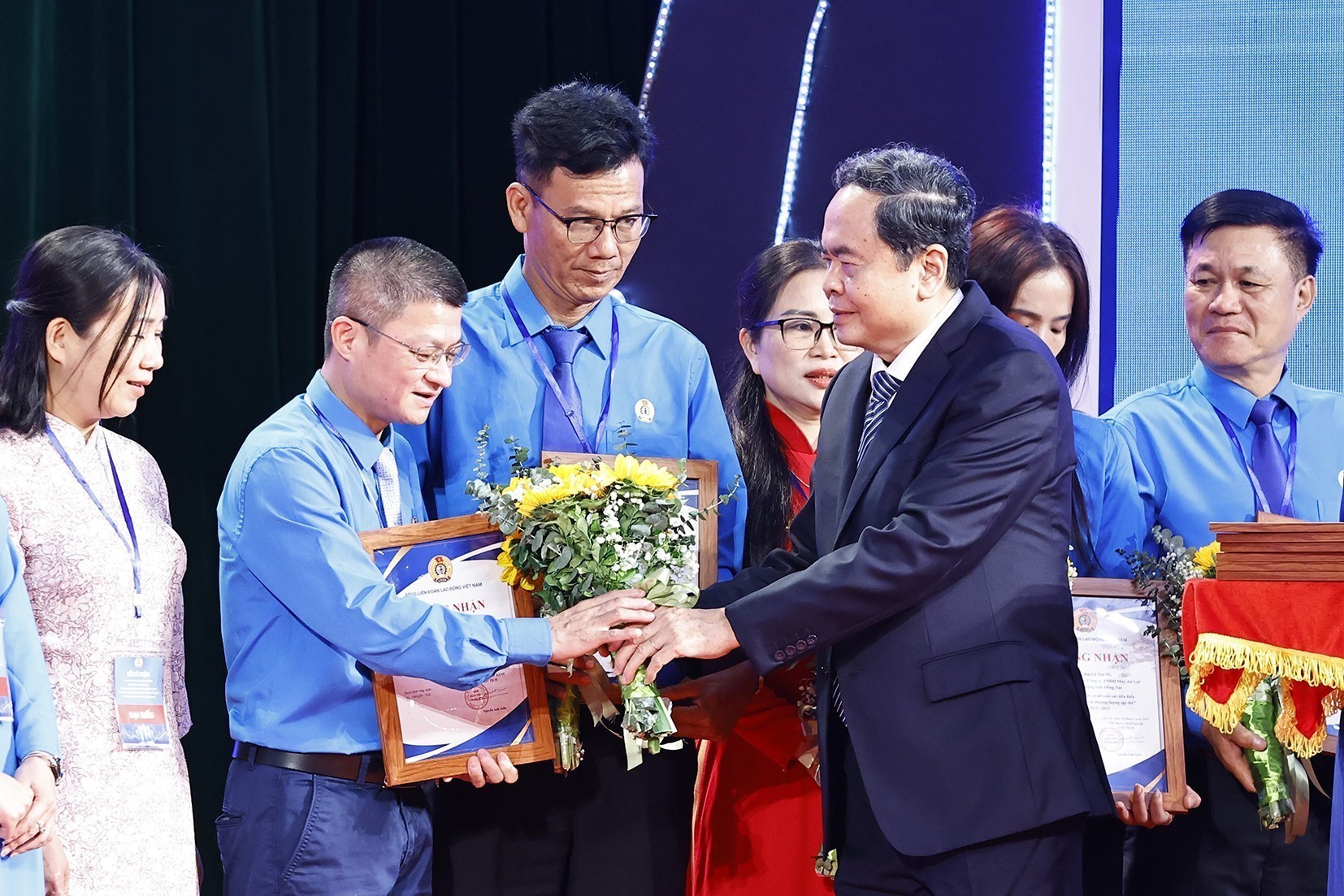 National Assembly Chairman Tran Thanh Man honours 101 outstanding grassroots trade union chairpersons at the event. Photo: VNA