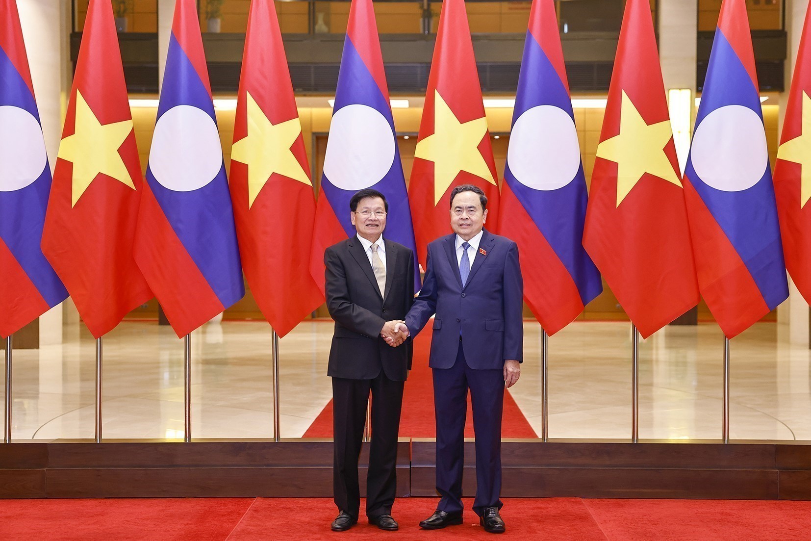 On behalf of the Vietnamese NA and people, the host congratulated Thongloun Sisoulith on being re-elected as General Secretary of the LPRP Central Committee. He expressed strong confidence that the LPRP leader, with his leadership capacity, political prestige, and rich experience, will continue to make major and important contributions to national construction, defence and development of Laos, leading the successful implementation of the Resolution of the 12th LPRP Congress and the 10th five-year socio-economic development plan (2026–2030), and further promoting the country's stature and prestige in the region and the world.