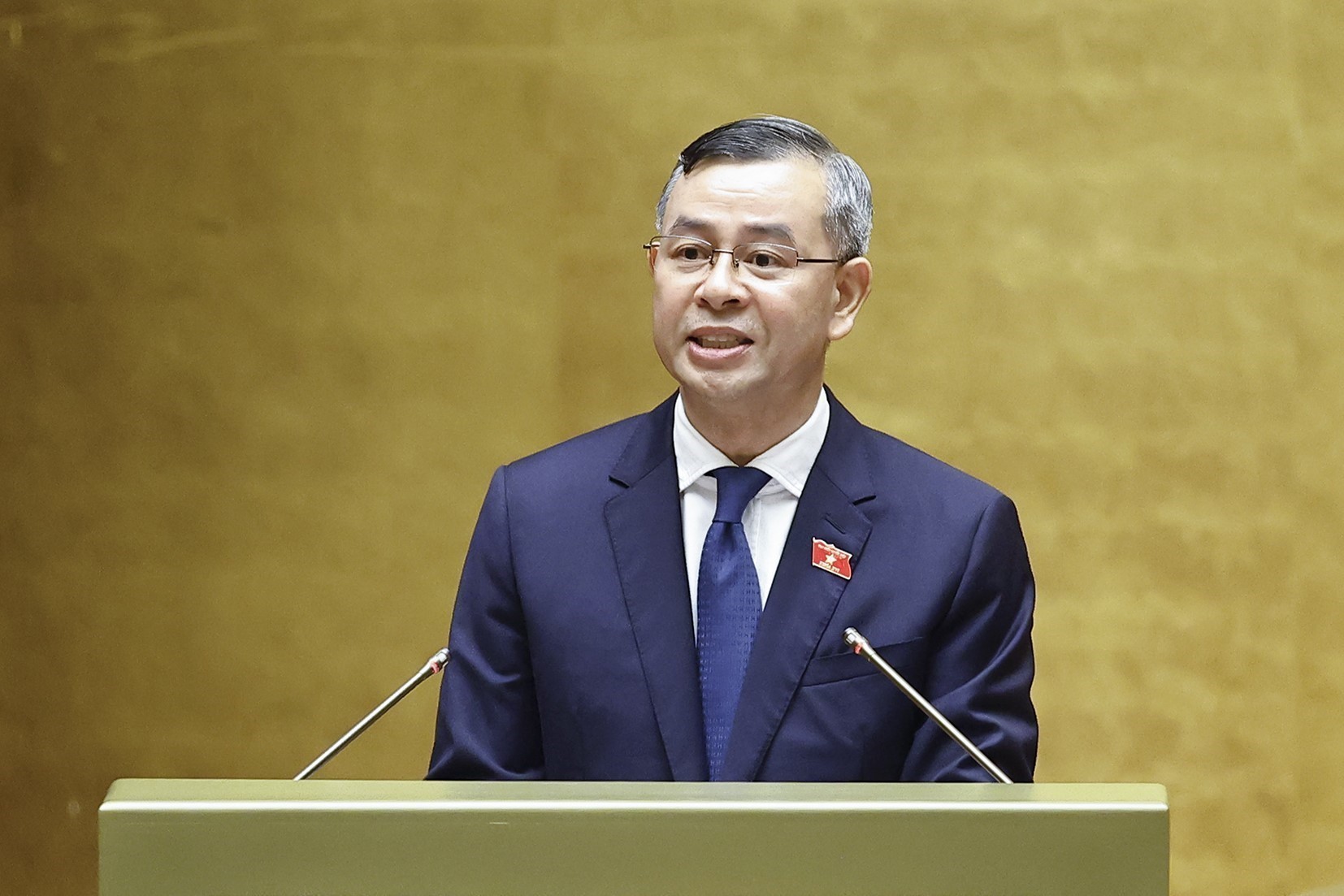 Minister of Finance Ngo Van Tuan presents the Government’s proposal. Photo: VNA