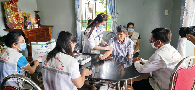 The healthcare team is continuously deployed to the residential area of Dat Do commune, providing home-based health check-ups for residents. Photo: VNA