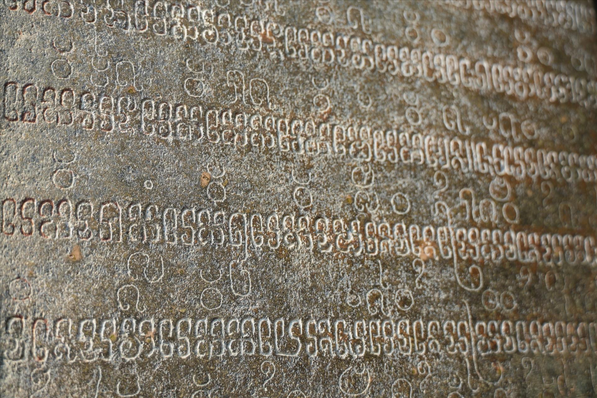 The outermost pillar of the Main Tower is inscribed with ancient Cham script. Photo: VNA