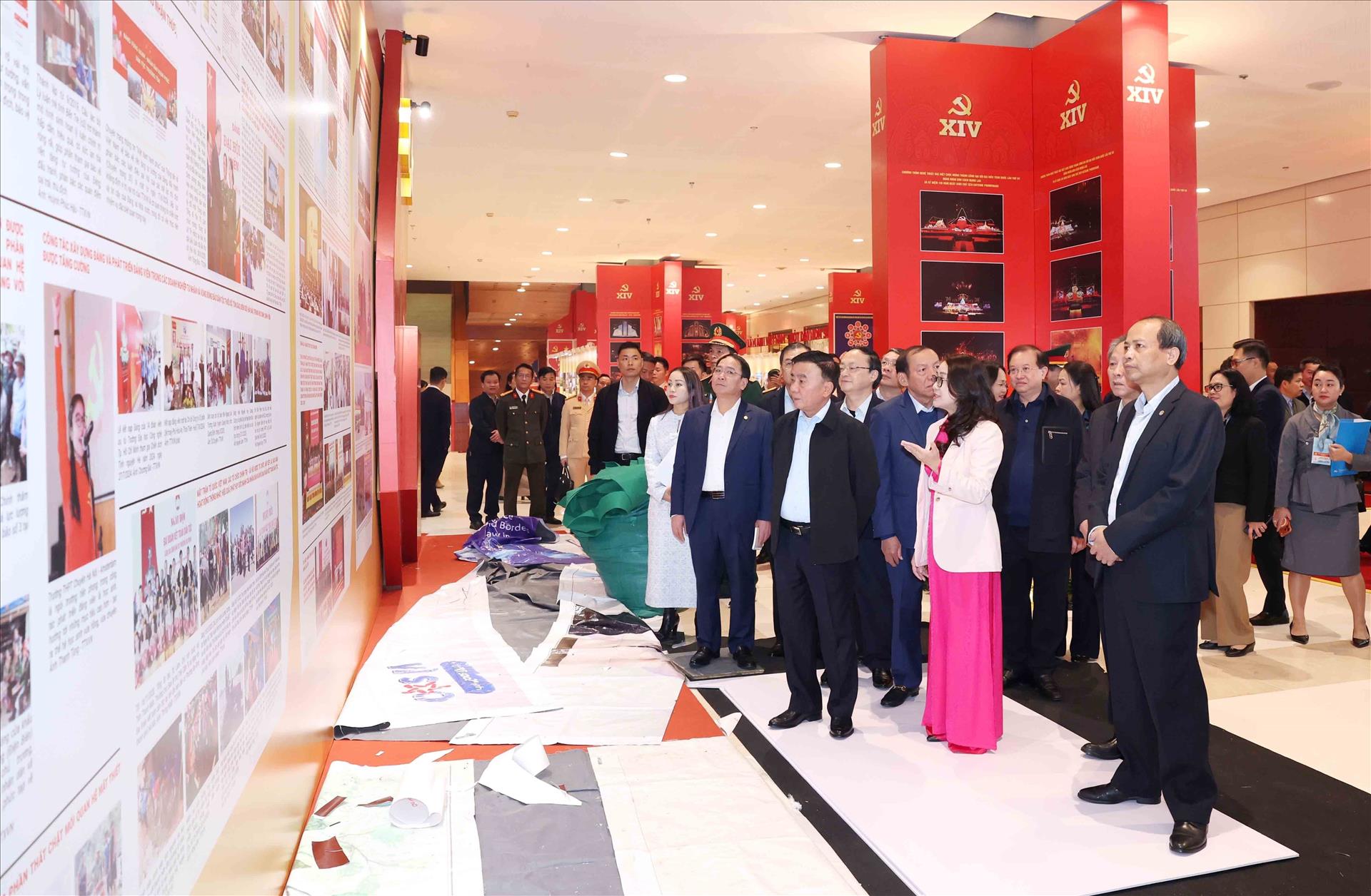 Permanent member of the Party Central Committee’s Secretariat Tran Cam Tu visits the photo exhibition "Under the Party Flag - The Country Enters a New Era," organized by the Vietnam News Agency. Photo: VNA