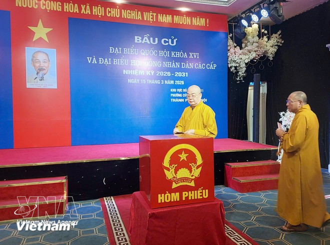 Buddhist monks cast ballots to elect deputties to the 16th National Assembly and People's Councils at all levels for the 2026-2031 term. Photo: VNA