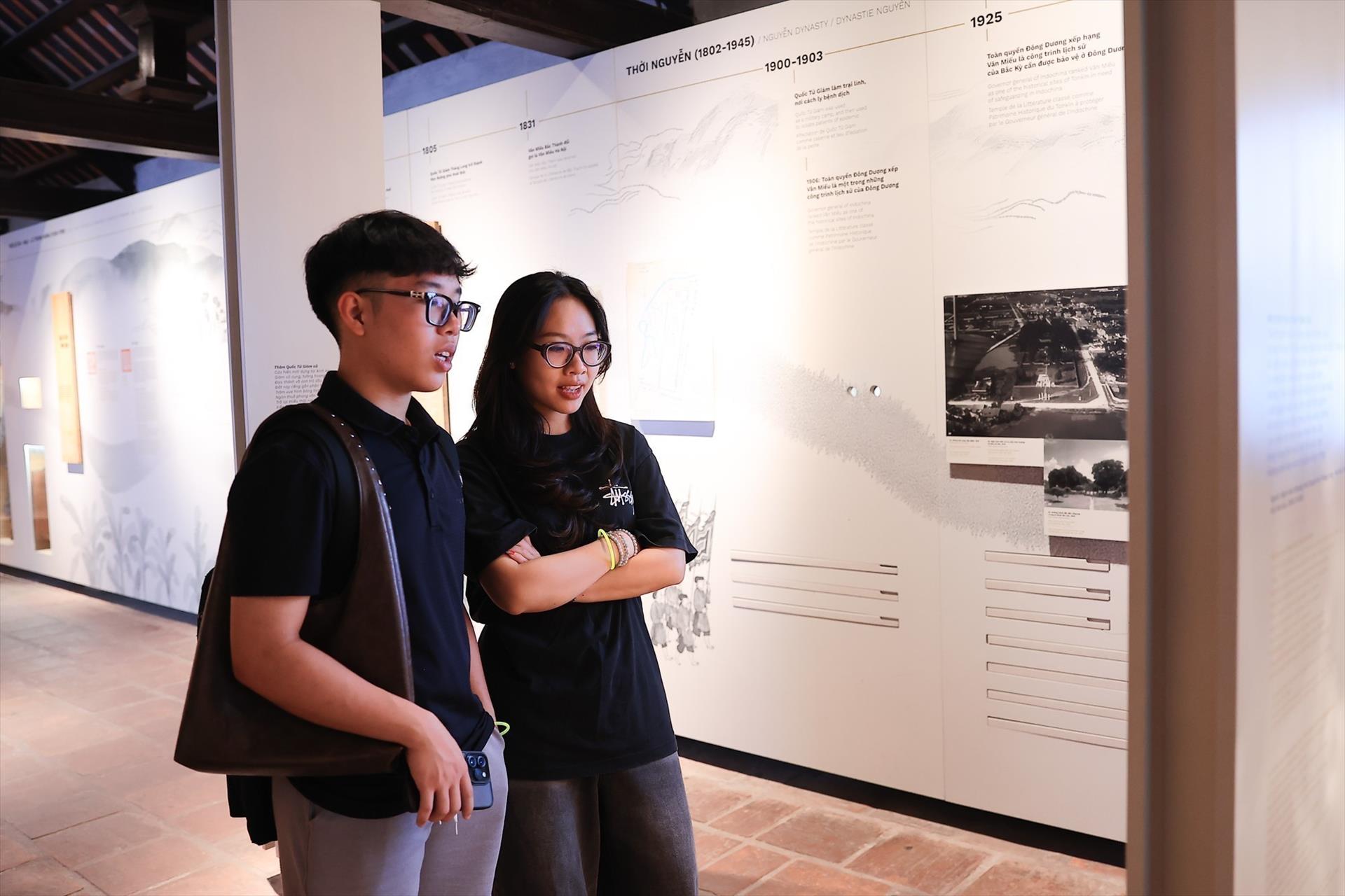 Young people visit an exhibition at the Temple of Literature. Photo: VNA