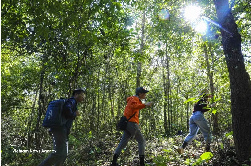 Travellers explore Pu To Co with backpacks and trekking poles, embracing the spirit of adventure. Photo: VNA