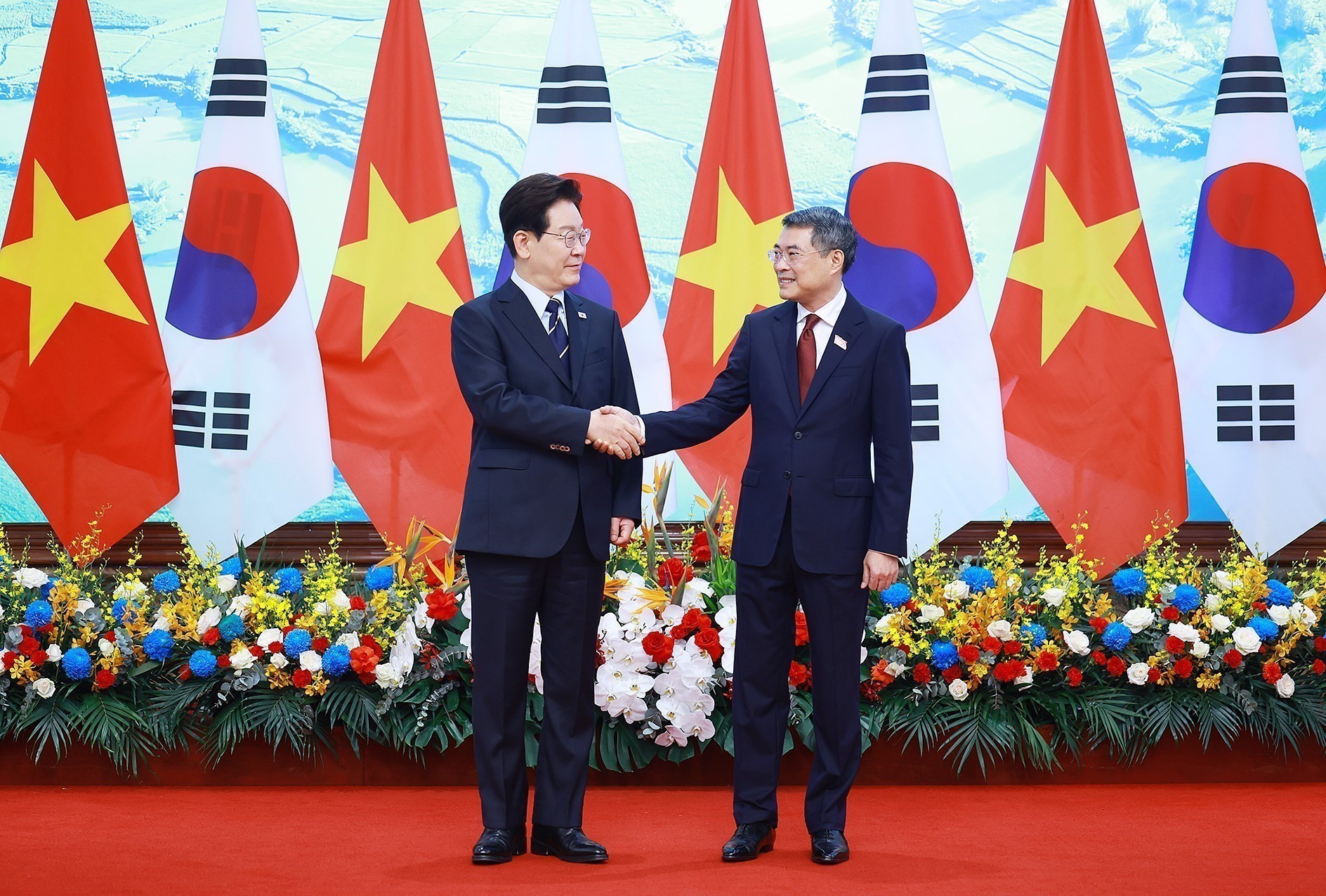 Prime Minister Le Minh Hung welcomes RoK President Lee Jae Myung. Photo: VNA
