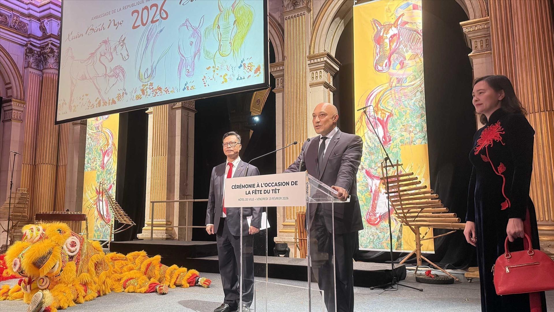 Ambassador Trinh Duc Hai described Tet as a meaningful time to convey messages of unity and friendship. He recalled that since 2014, when Paris first opened its City Hall for the Vietnamese community to celebrate Tet, the event has become an annual meeting point of bilateral friendship.