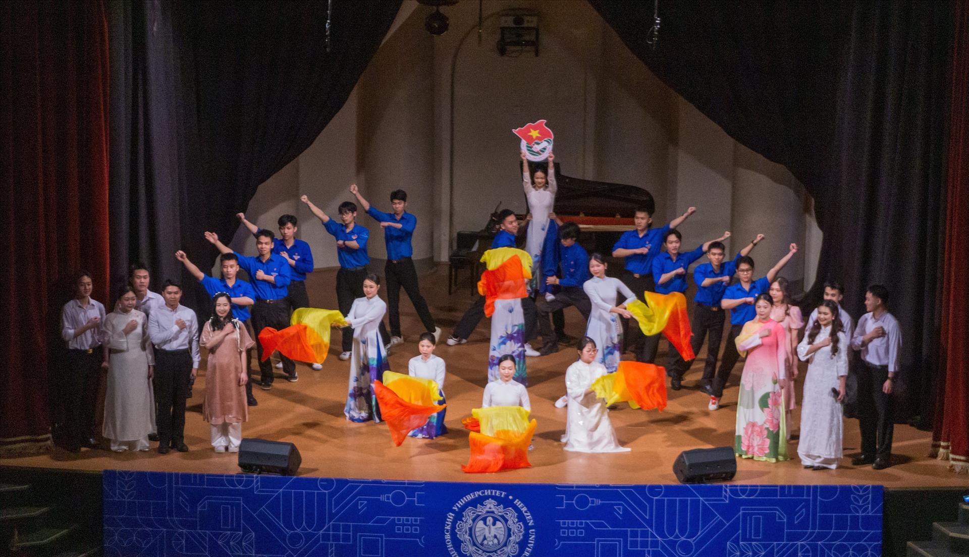 Vietnamese students' art performances at a ceremony reviewing the Union’s 95-year history at Herzen State Pedagogical University. Photo: VNA