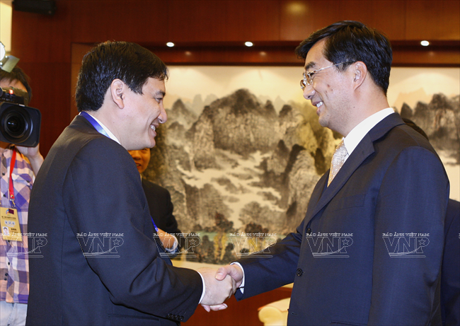 Chinese Vice President Li Yuanchao receives the President of Vietnam Fatherland Front Nguyen Thien Nhan. Photo: Duong Giang – VNA