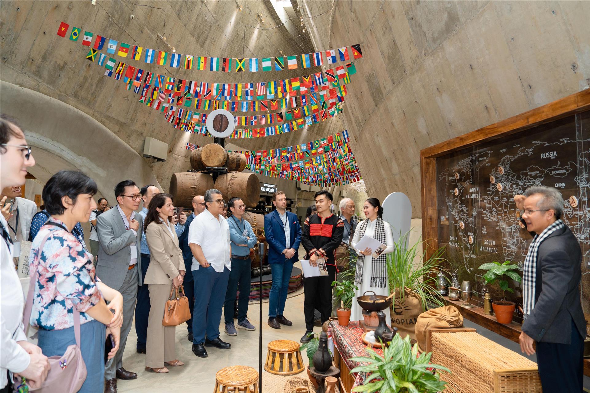 Local and foreign delegates exploring the World Coffee Museum. Photo: VNA