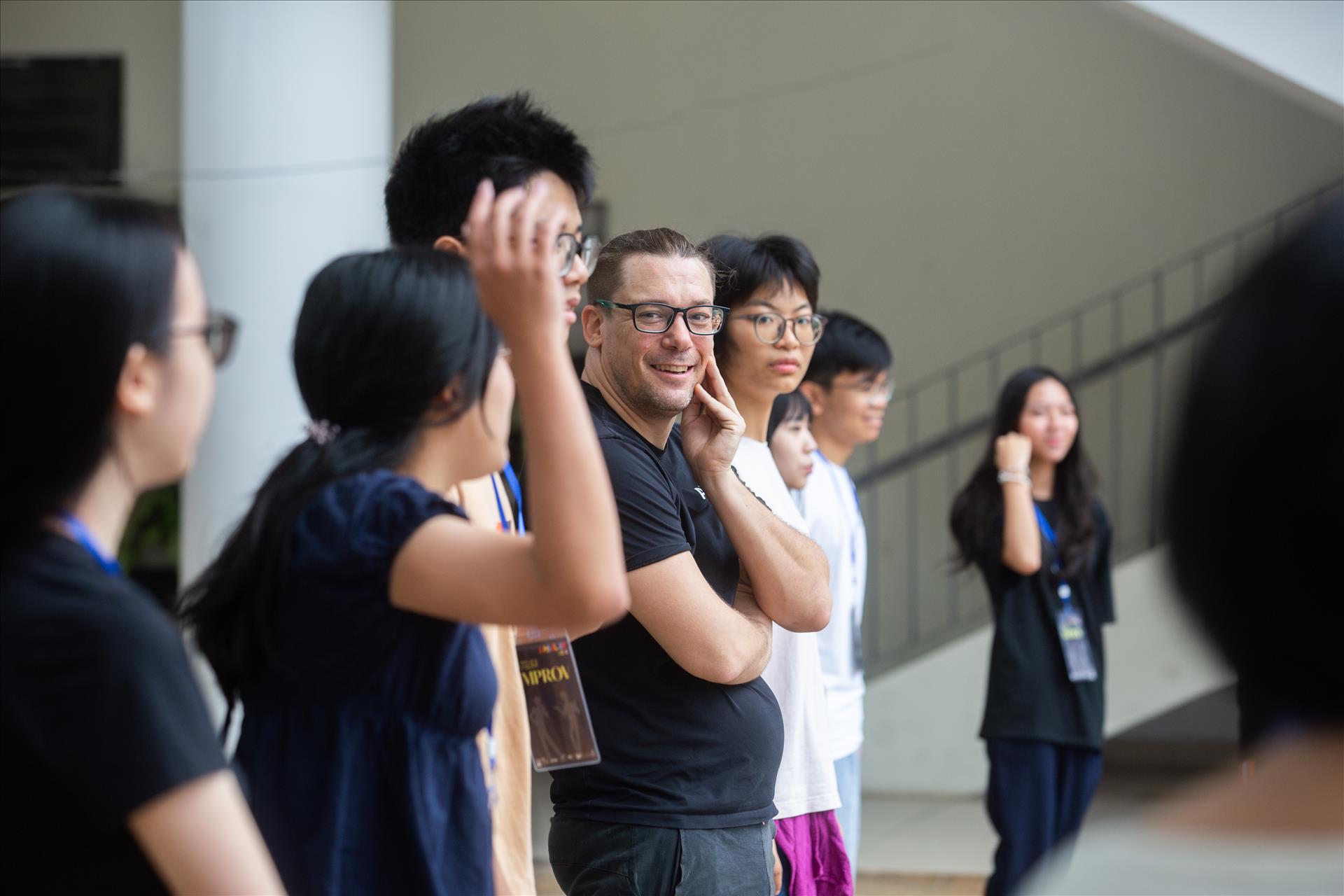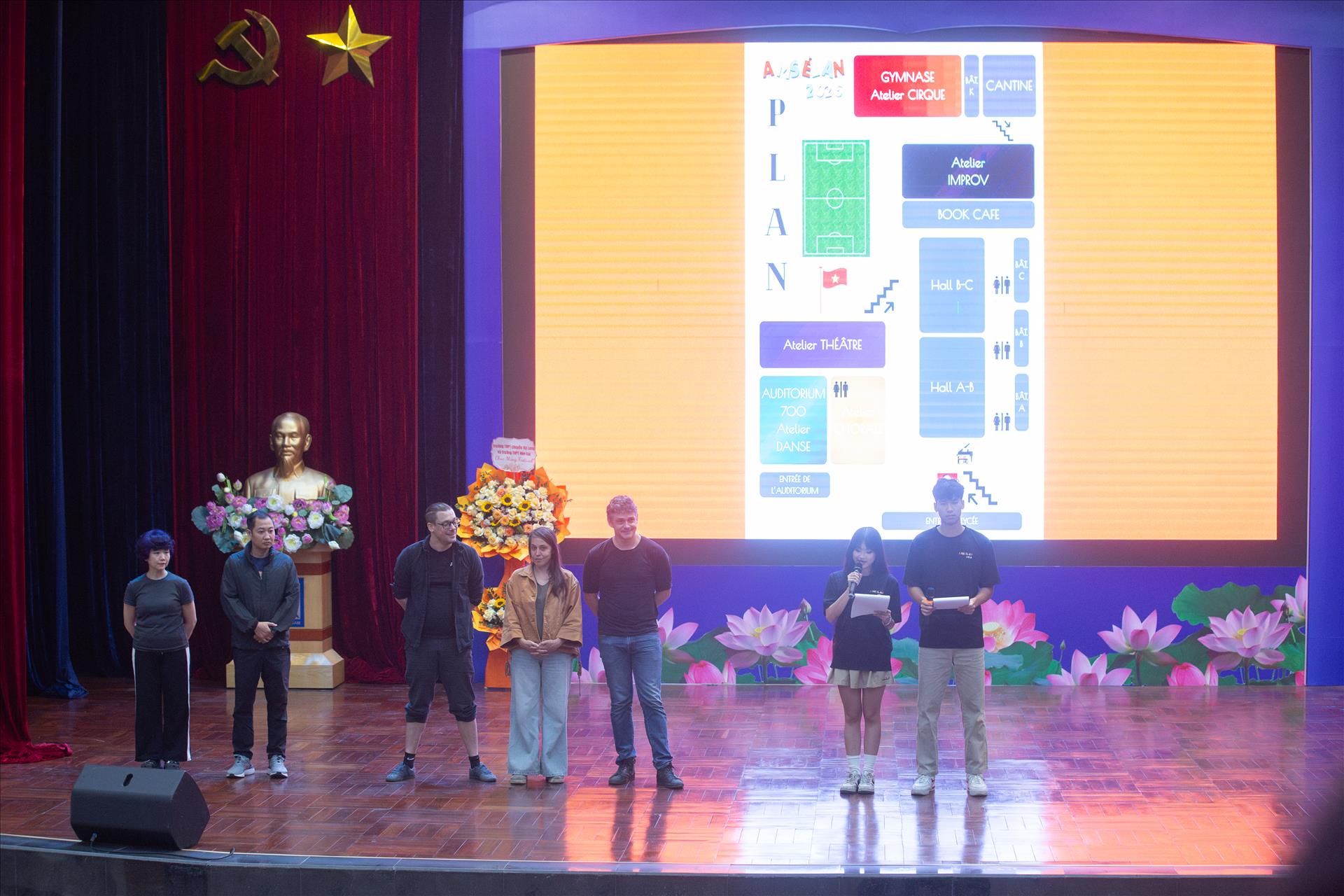Durant toute la préparation et pendant les représentations, les groupes ont travaillé avec des artistes de l’Atelier de théâtre ATH, ainsi qu’avec deux intervenants vietnamiens spécialisés en cirque et en danse contemporaine. Cette collaboration a permis aux élèves de découvrir des méthodes proches du cadre professionnel, tout en stimulant leur créativité.
