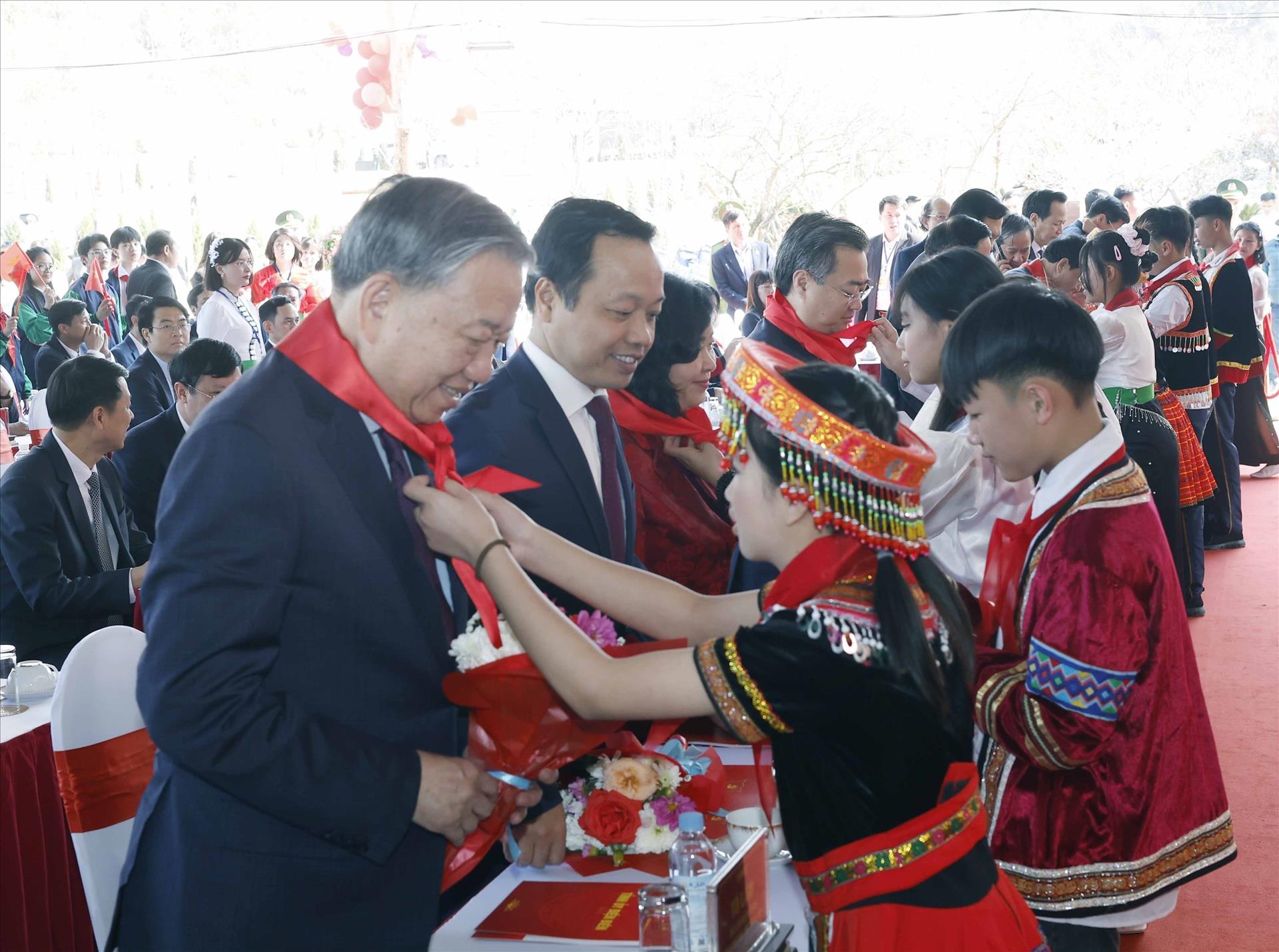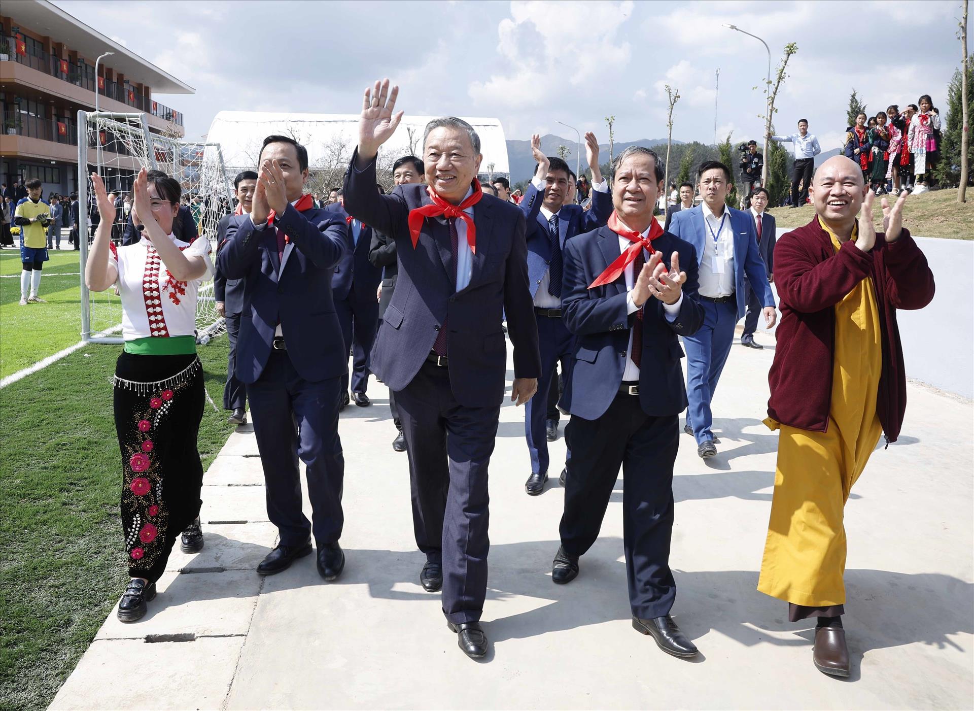 S’exprimant lors de la cérémonie d’inauguration, To Lam a affirmé que le Parti considère toujours l’éducation et la formation comme une politique nationale prioritaire, constituant le fondement d’un développement rapide et durable du pays. Pour les zones frontalières, reculées et difficiles d’accès, l’éducation ne se limite pas à l’élévation du niveau de connaissances et à la formation des ressources humaines ; elle représente également une solution fondamentale et de long terme pour préserver la souveraineté nationale à sa racine même, à savoir l’être humain et les communautés résidant durablement sur leurs terres, leurs villages, le long des frontières et des bornes frontalières.