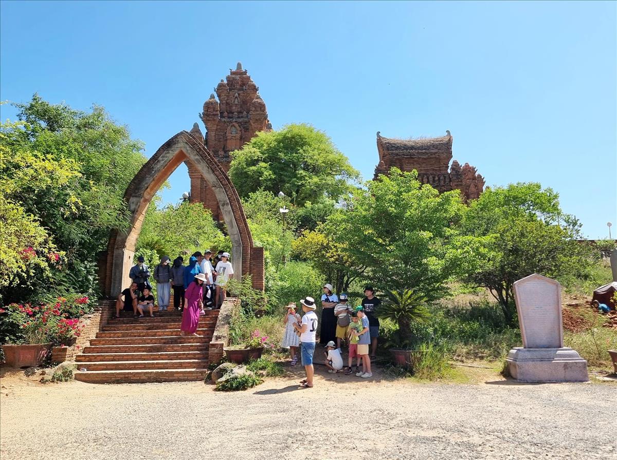 Visiteurs dans la tour Po Klong Garai. Photo: VNA