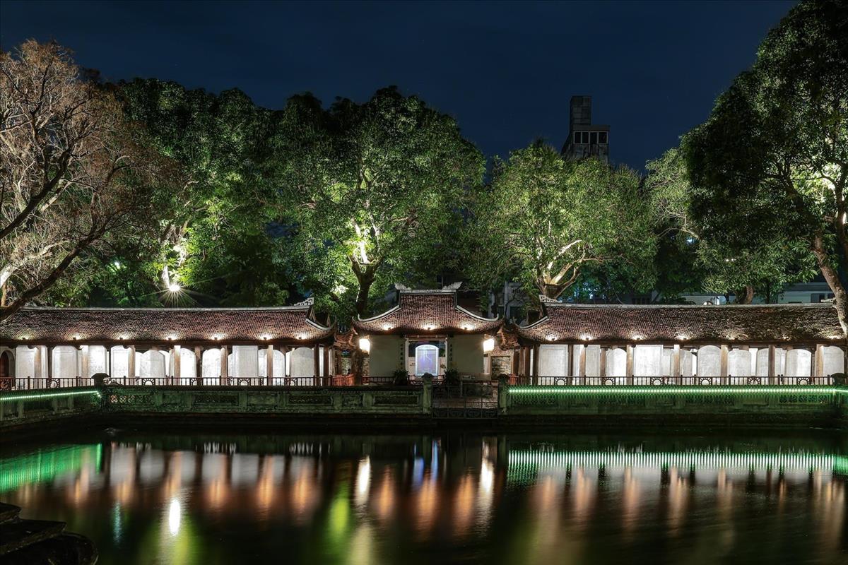 Le pavillon de la Constellation des lettres (Khue Van Cac) bénéficie d'un éclairage artistique qui magnifie la beauté de l'architecture traditionnelle. Photo: VNA