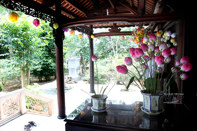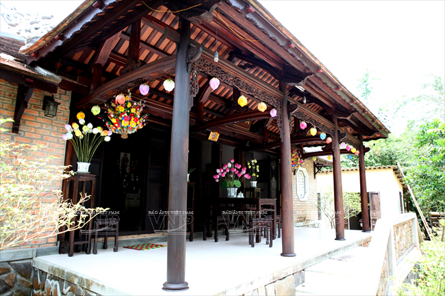 Les fleurs de papier colorés sont utilisées pour décorer une maison Ruong à Huê. Photo: VNP